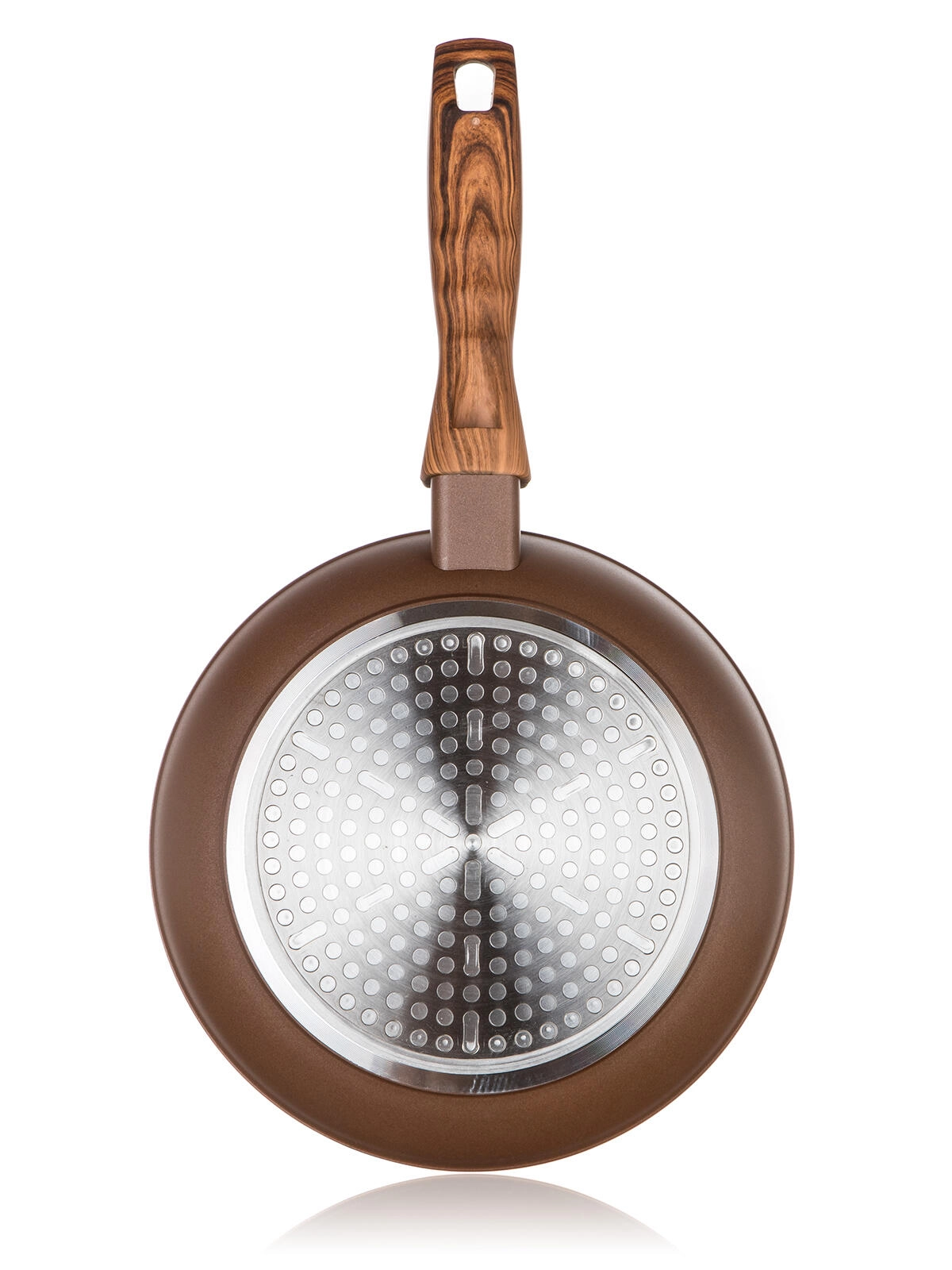 Datorită fundului complet pentru inducție, tigaia este compatibilă cu toate tipurile de plite – electrică, pe gaz, vitroceramică și inducție. Mânerul ergonomic din bachelită cu finisaj soft touch în imitație de lemn se potrivește bine în mână și rămâne rece în timpul gătirii.