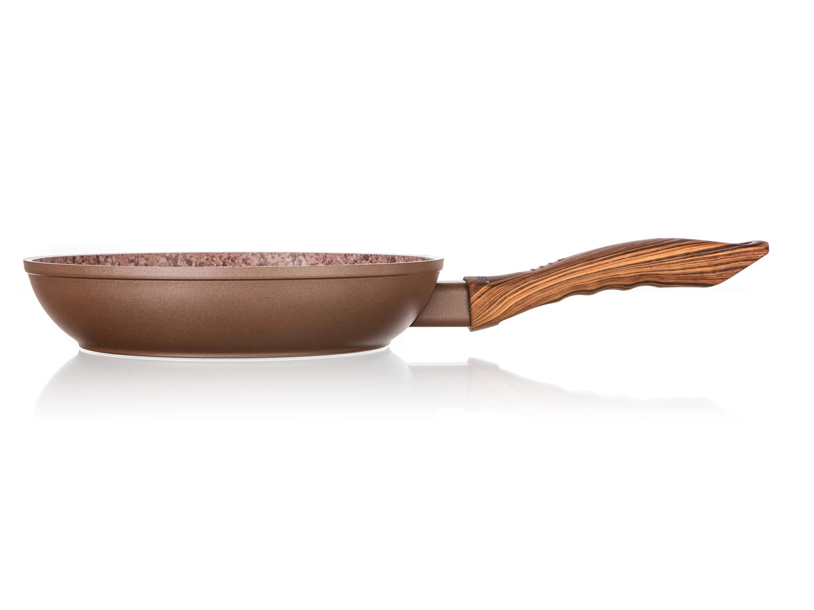 Tigaie compactă cu diametrul de 20 cm, cu suprafață antiaderentă tip piatră pentru gătit ușor fără ardere. Oferă distribuție uniformă a căldurii, fund pentru inducție și mâner ergonomic cu finisaj soft touch cu decor de lemn. Potrivită pentru toate tipurile de plite și poate fi spălată în mașina de spălat vase.