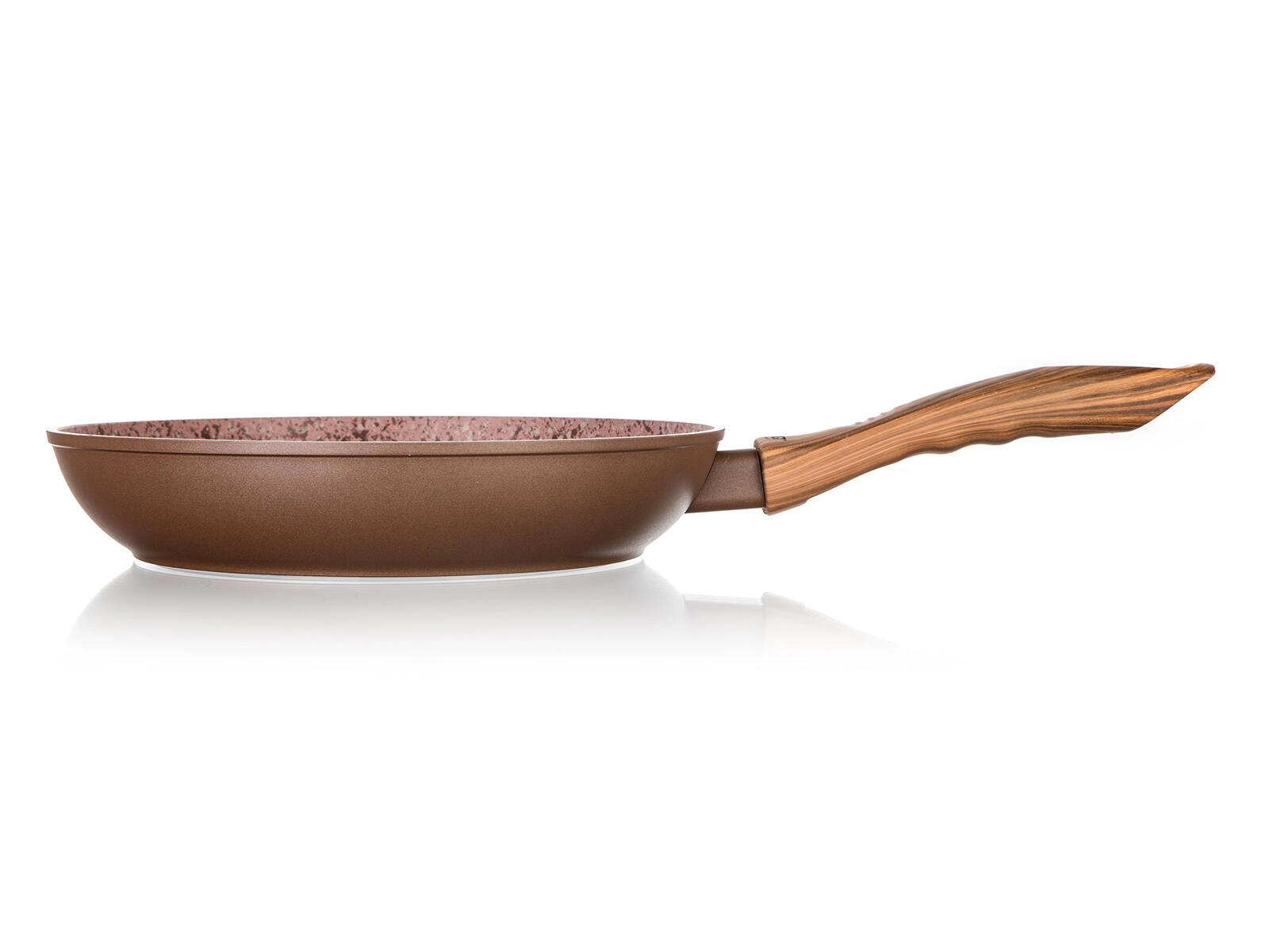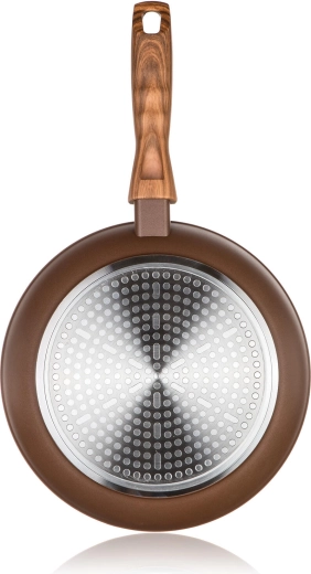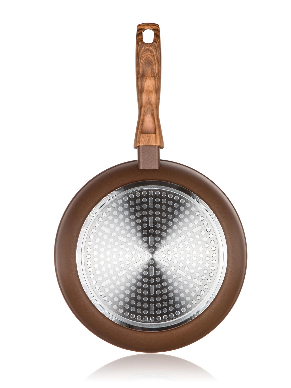 Datorită bazei pentru inducție pe toată suprafața, tigaia este compatibilă cu electrică, gaz, vitroceramică și inducție. Mânerul ergonomic din bachelită, cu suprafață soft touch în imitație de lemn, se potrivește bine în mână și rămâne plăcut rece.