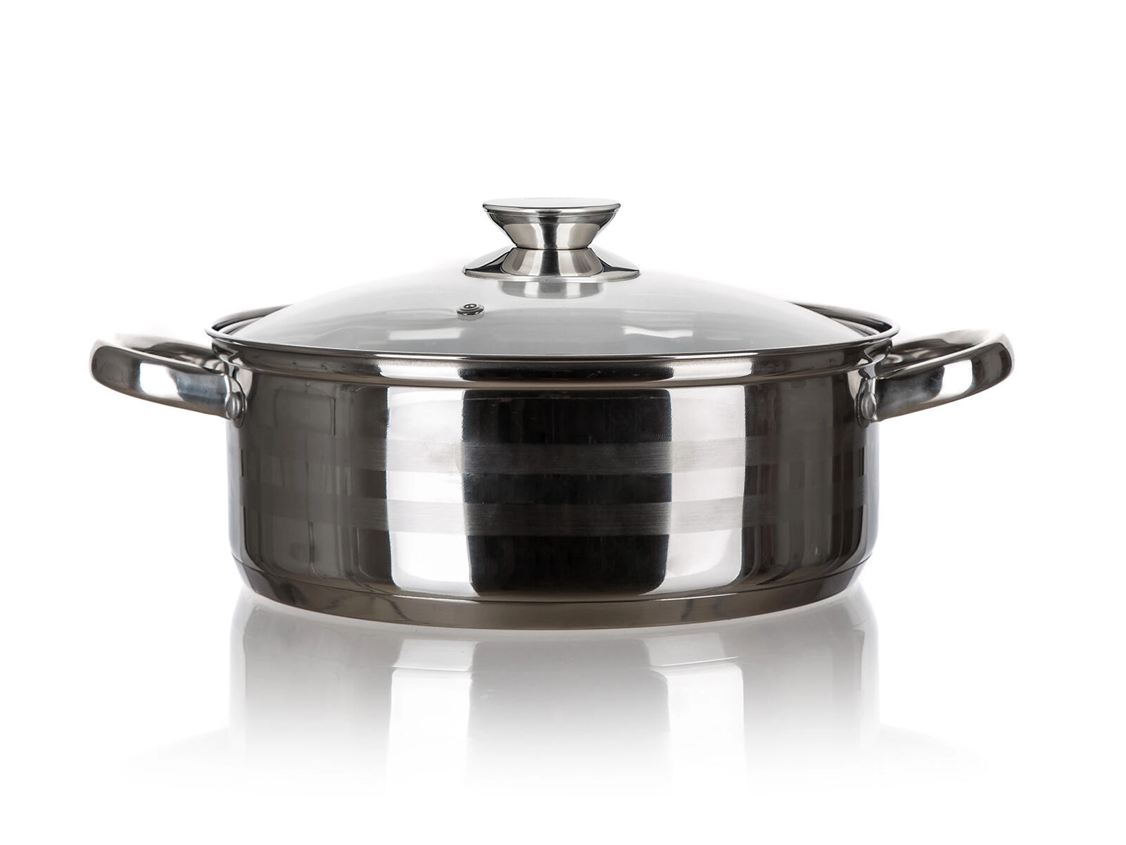 Oala spațioasă din inox LIVING, cu volum de 8,4 l și diametru de 30 cm, este ideală pentru supe, sosuri și porții mai mari. Oferă capac din sticlă, mânere robuste din inox, suprafață lucioasă cu dungi mate și este potrivită pentru toate tipurile de plite, inclusiv cu inducție, precum și pentru mașina de spălat vase.