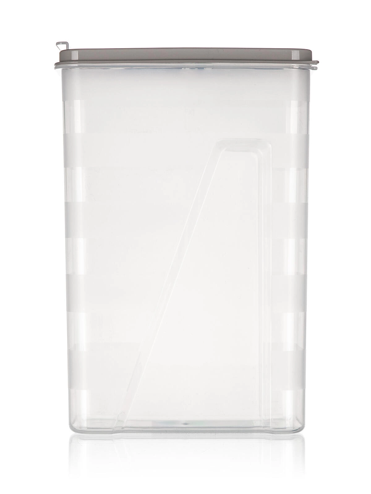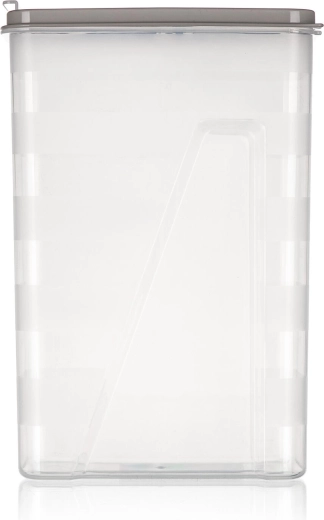 Fă ordine în cămară cu o cutie universală din plastic pentru alimente uscate. Designul transparent asigură vizibilitate imediată, în timp ce capacul etanș cu deschidere rabatabilă în culoarea latte facilitează turnarea și presărarea fără dezordine. Datorită volumului de 2,5 l este excelentă pentru utilizarea zilnică.