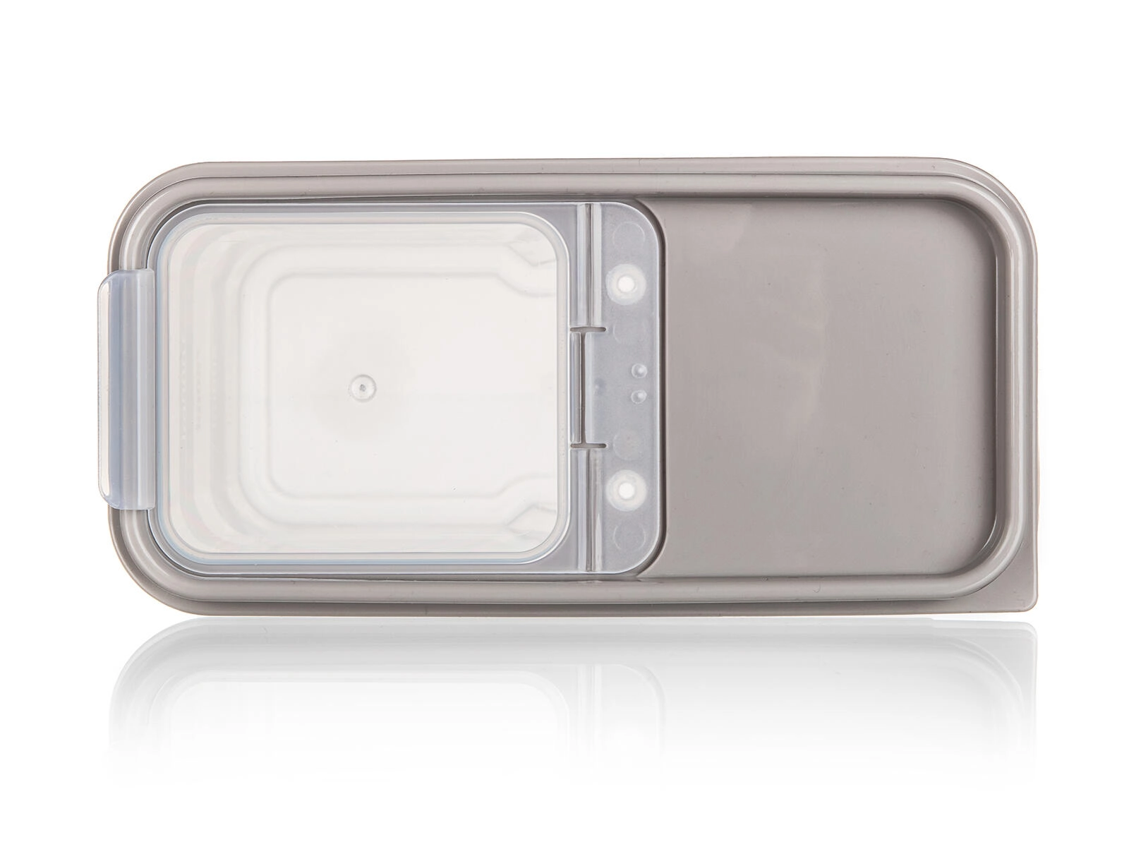 Practicile marcaje de măsurare la fiecare 250 ml te ajută să dozezi exact cantitatea la gătit și copt. Cutia este rezistentă, ușor de curățat și, prin forma sa suplă și înaltă, economisește eficient spațiu pe rafturi.