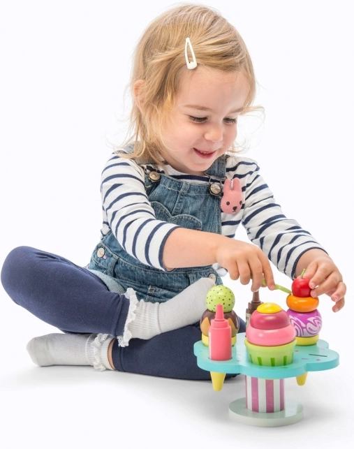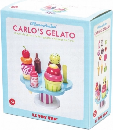 Setul de joacă Le Toy Van Carlo’s Gelato le oferă copiilor porții nesfârșite de distracție și imaginație. Conține cornete și un pahar, cupe detașabile, două sosuri și toppinguri, plus o linguriță. Este realizat din lemn sustenabil certificat FSC, pictat manual cu vopsele netoxice pe bază de apă și susține motricitatea fină, abilitățile cognitive și jocul de rol.