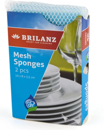 Bureți practici pentru vase BRILANZ, în set de 2 bucăți, pentru spălare ușoară și eficientă. Combinația dintre stratul din plasă fină și miezul din spumă îndepărtează delicat, dar eficient, murdăria fără a zgâria. Mărimea universală 10 × 8 × 3,5 cm se potrivește perfect în mână, iar mixul de culori galben/albastru oferă un aspect proaspăt bucătăriei tale.
