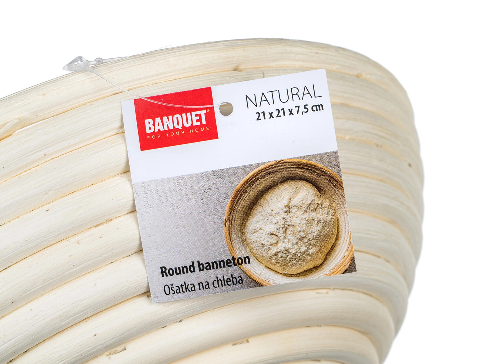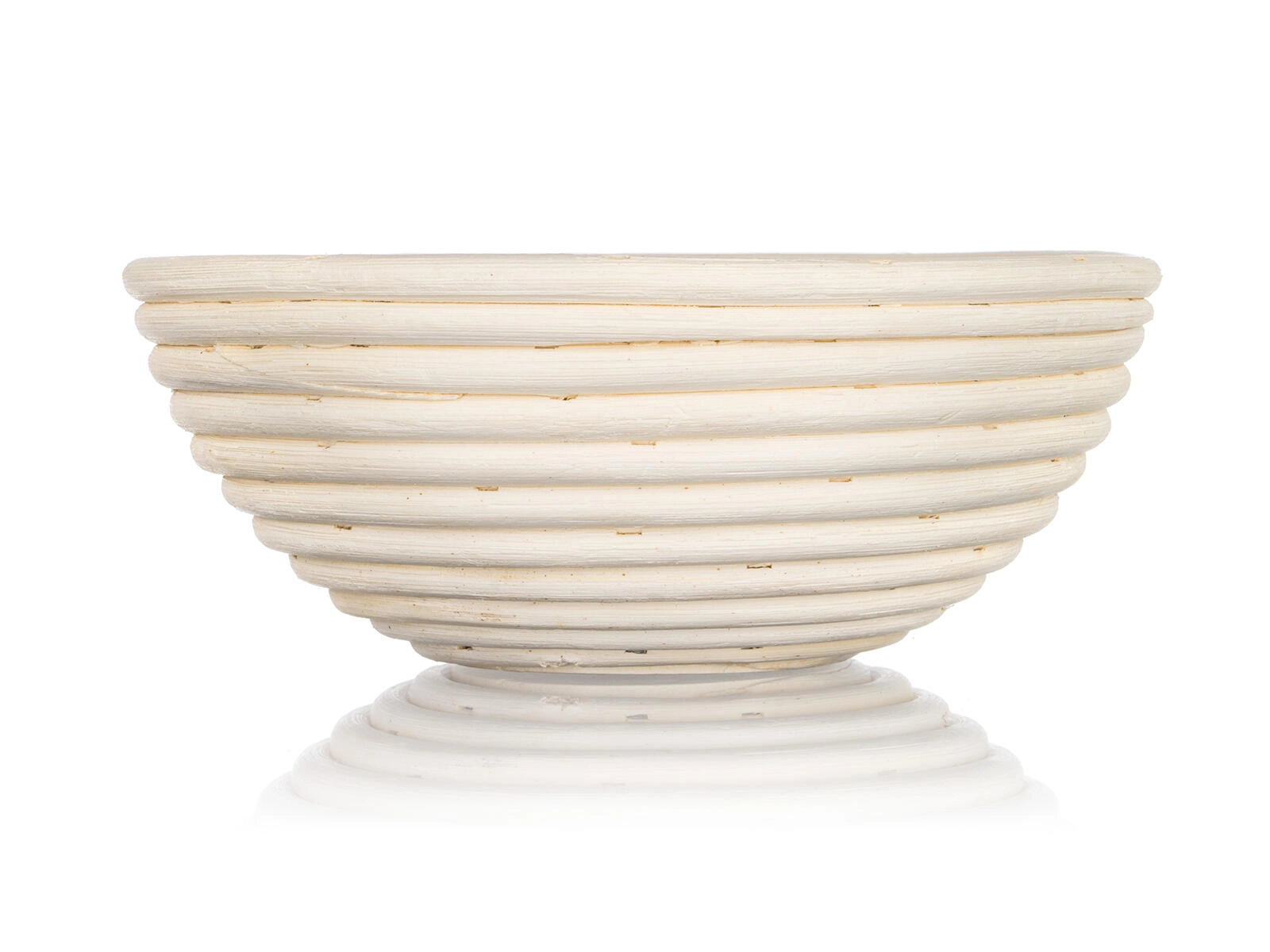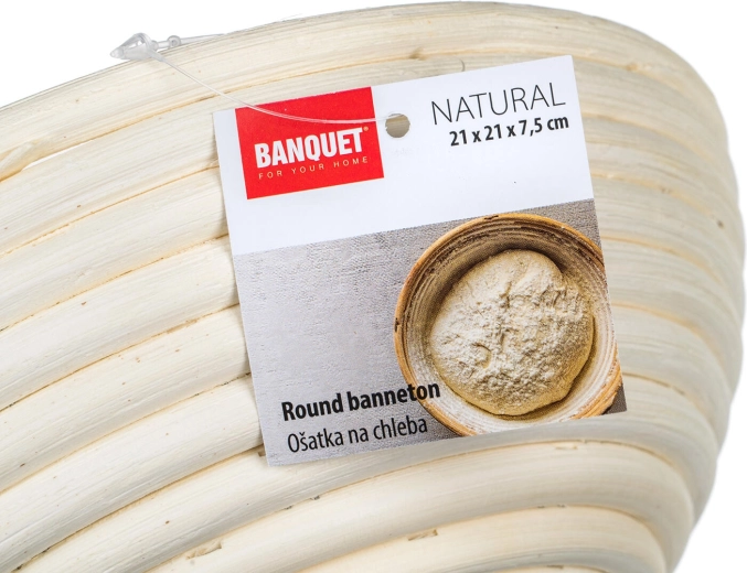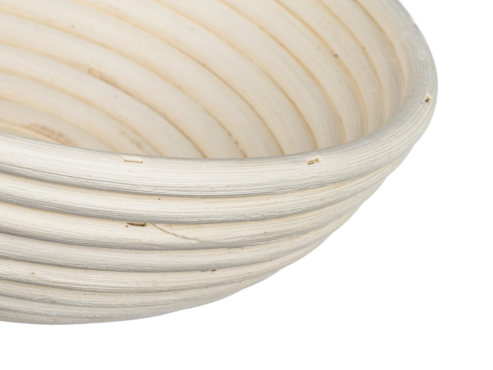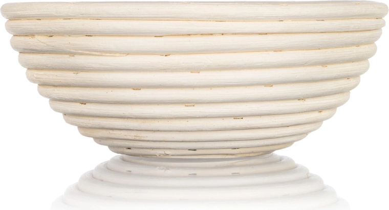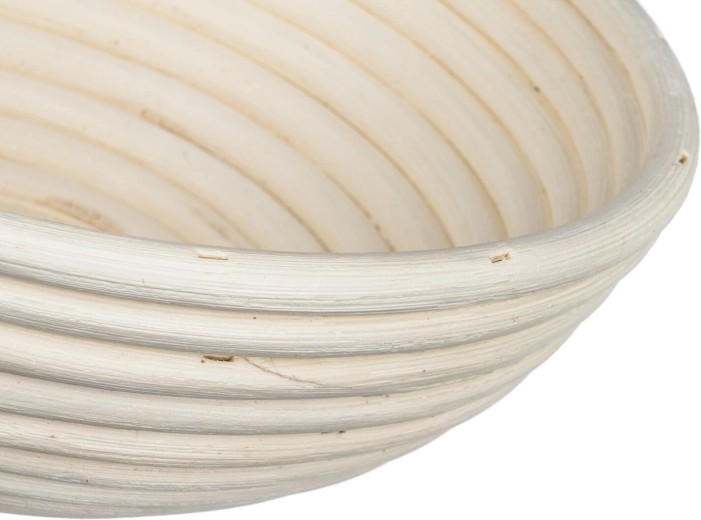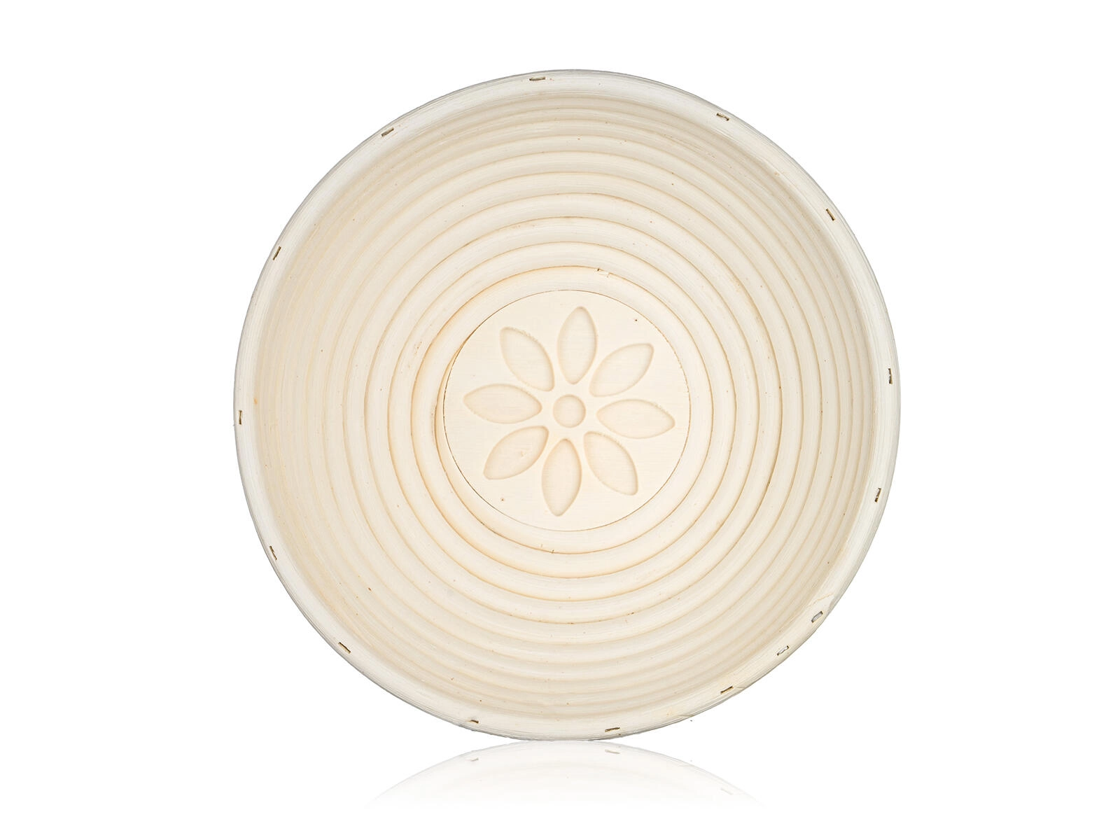 Coș rotund din ratan natural cu diametrul de 21 cm, cu decor floral pe fund, ideal pentru dospirea aluatului de pâine. Canelurile spiralate susțin fermentarea uniformă și creează un model atractiv pe coajă. Ușor, respirabil și ușor de întreținut – este suficient să ștergi cu o cârpă umedă.