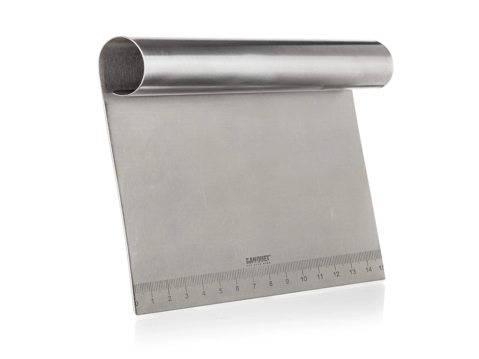 Spatula din inox AKCENT 15 cm combină durabilitatea și precizia pentru utilizarea zilnică în bucătărie. Lama lată din oțel inoxidabil facilitează transferul ingredientelor de pe tocător în oală și divizarea aluatului fără rupere. Rigla integrată în centimetri ajută la porționare și modelare precise.