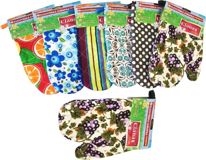 Mănușă de bucătărie practică cu magnet și agățătoare pentru agățare ușoară, care îți protejează mâinile la gătit și copt. Datorită dimensiunilor 26 × 17 cm și materialului din bumbac plăcut, oferă confort la utilizare. Se livrează ca mix de motive, care va înveseli orice bucătărie.