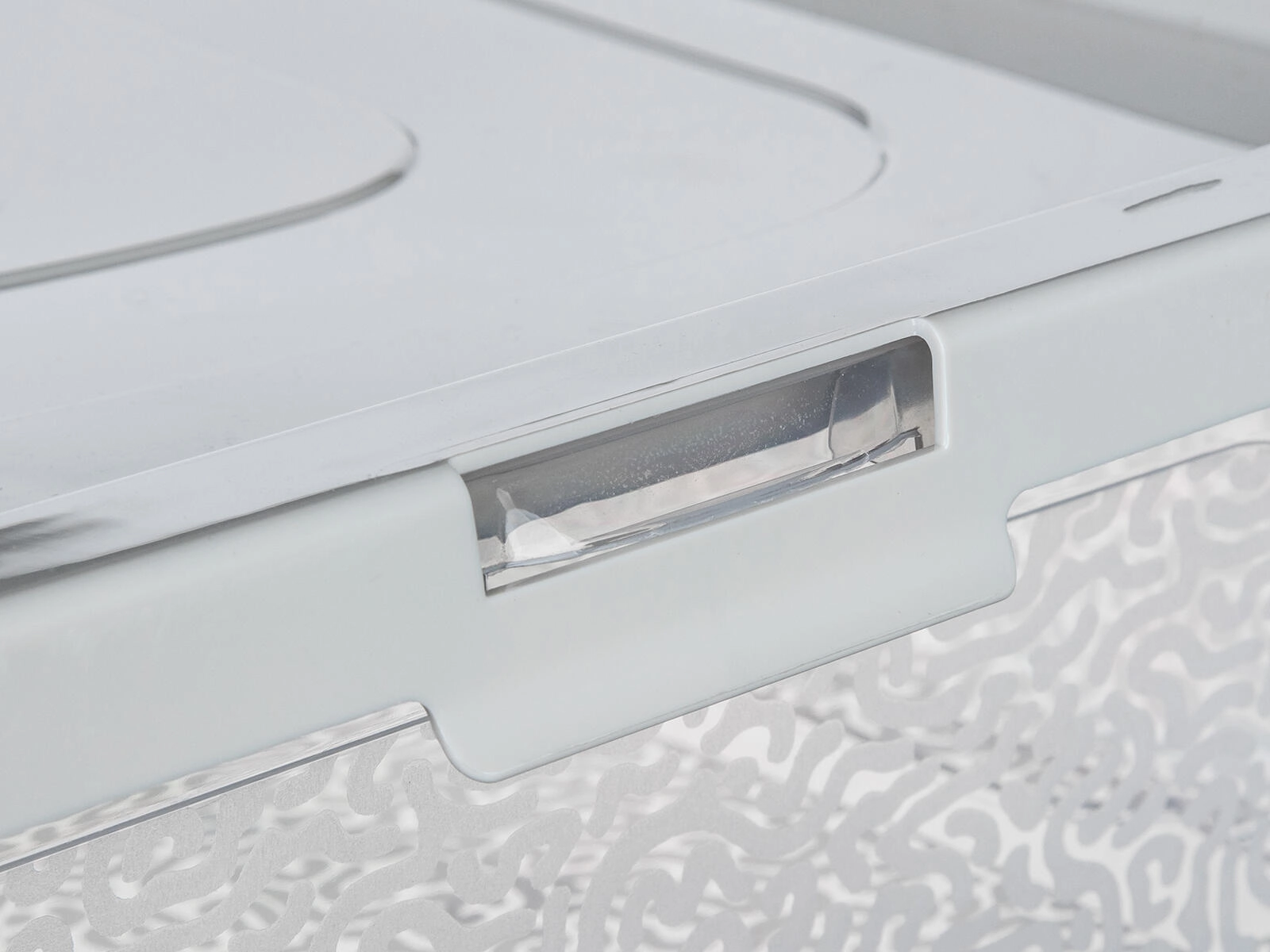 Clemele laterale practice fixează ferm capacul, astfel încât cutia nu se deschide accidental, iar conținutul rămâne protejat împotriva prafului și răsturnării.