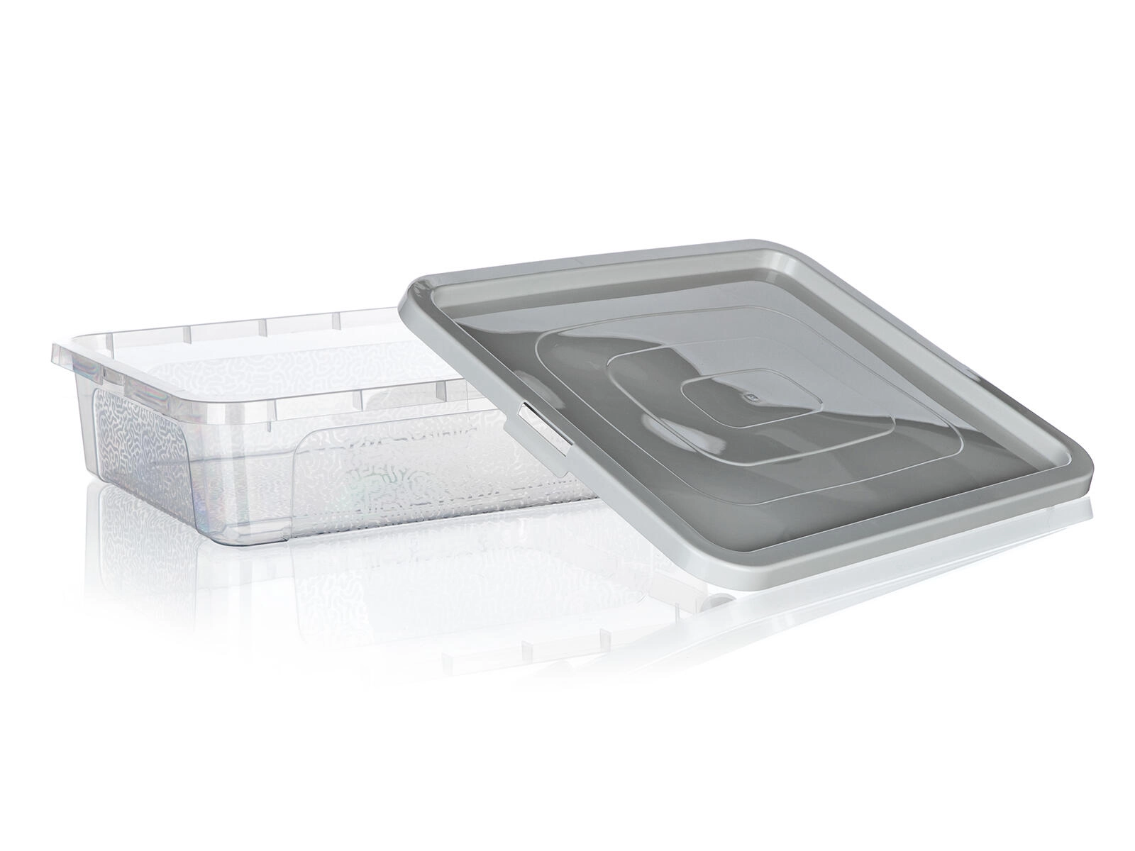 Cutia de depozitare practică și transparentă MULTIBOX, cu un volum de 10 l, este ideală pentru depozitarea ordonată și transportul facil al obiectelor în gospodărie și la birou. Datorită capacului robust și clemelor laterale, conținutul rămâne în siguranță și ferit de praf. Profilul său redus permite depozitarea pe rafturi sau sub pat, iar pereții transparenți oferă o vedere imediată asupra conținutului. Plastic rezistent, depozitare fără praf și dimensiuni practice 40 × 33 × 10 cm fac din această cutie un ajutor de încredere pentru organizare.