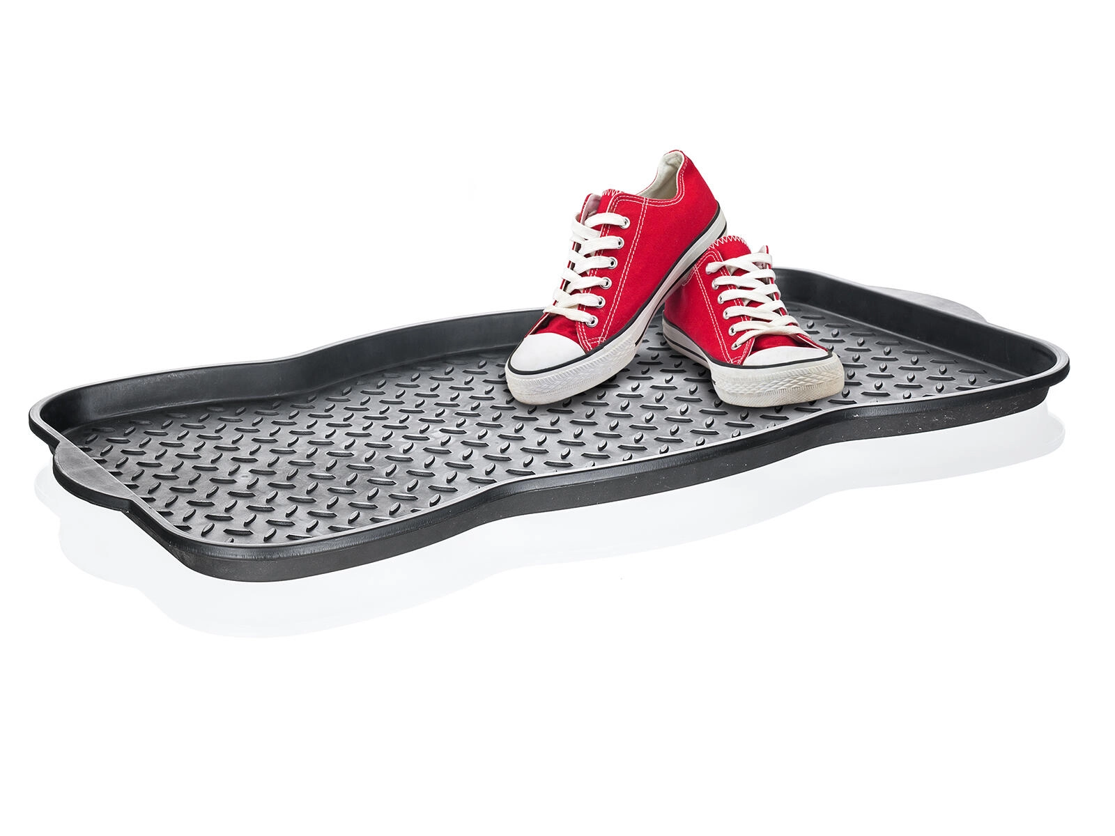 Suprafața texturată cu model antiderapant menține încălțămintea stabilă pe loc și facilitează scurgerea lichidelor. Tava este ușor de spălat – este suficient să fie clătită cu apă. Designul minimalist negru se potrivește discret în orice interior.