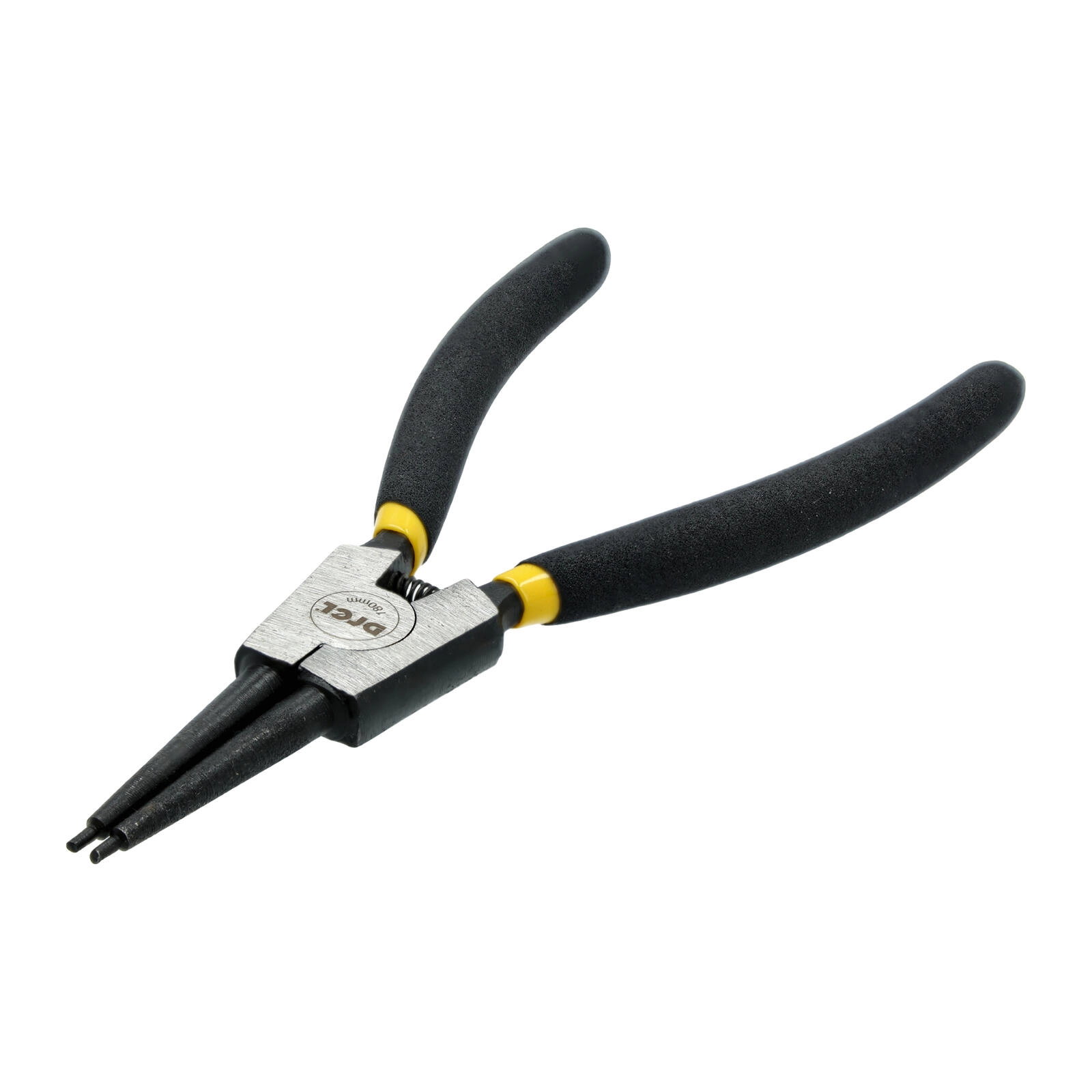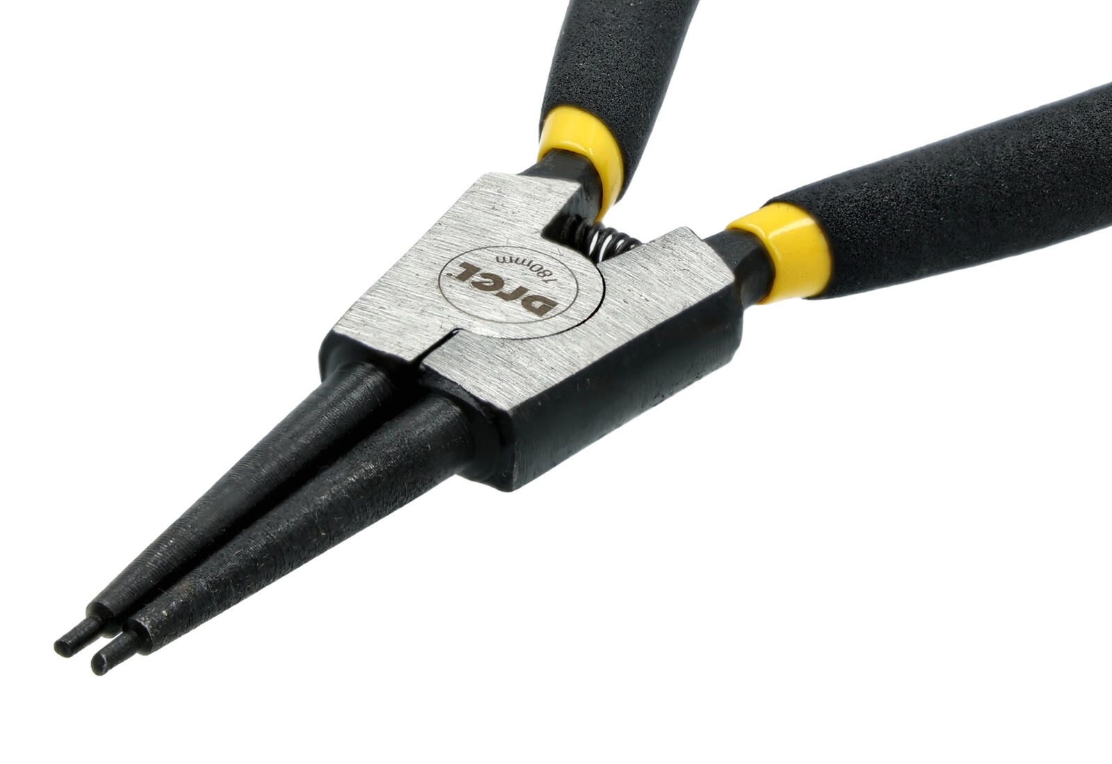 Cleşti profesionali DREL pentru inele de siguranță exterioare, cu lungimea de 180 mm, pentru lucru rapid şi precis pe arbori şi axe. Oferă vârfuri lungi, fine pentru prinderea sigură a inelelor, mecanism cu arc pentru deschidere comodă şi mânere ergonomice anti-alunecare pentru o priză sigură chiar şi în timpul lucrului prelungit.