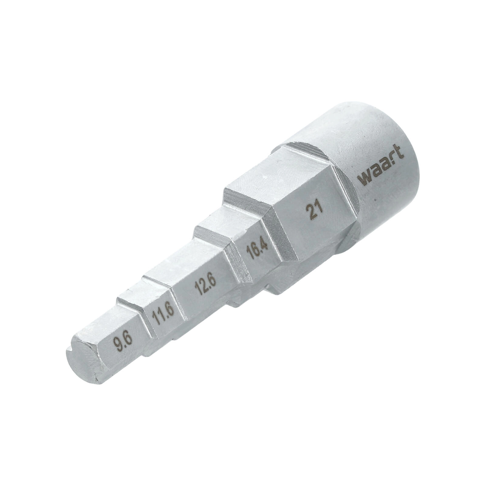 Designul în trepte permite comutarea rapidă între dimensiunile 3/8", 29/68", 1/2", 21/32" și 27/32" (9,6–21 mm) fără a schimba unealta.