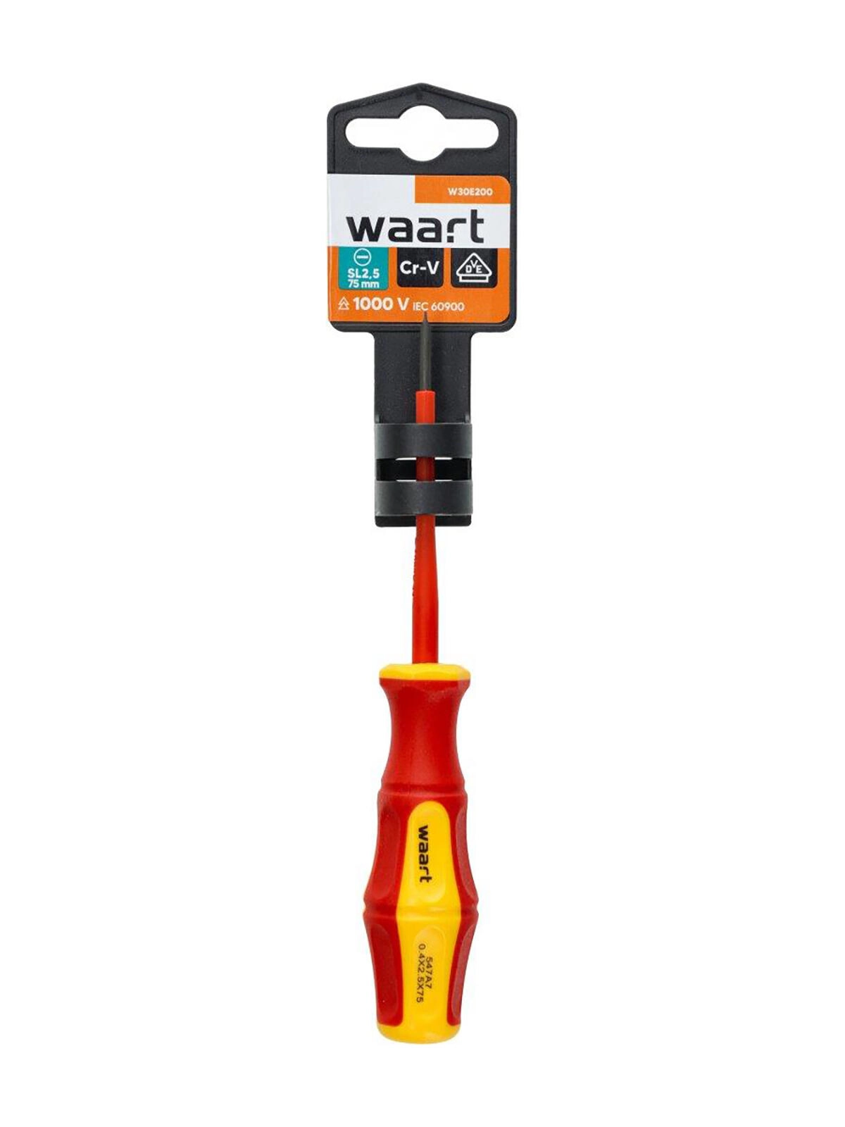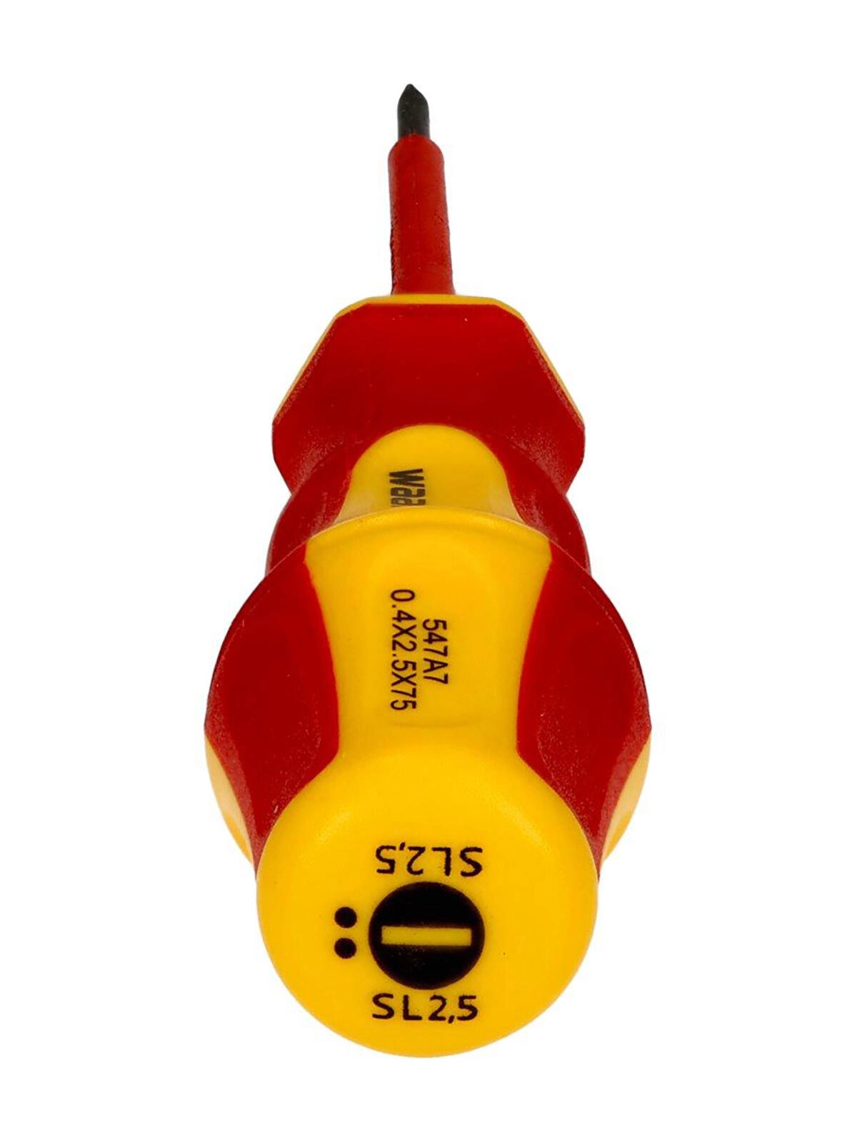 Șurubelniță profesională plată pentru electrotehnică SL 2,5 × 75 mm din oțel CrV de calitate, cu certificare VDE până la 1000 V. Mânerul ergonomic din TPR și PP asigură o prindere sigură, confort și lucru în siguranță pe echipamente electrice. Ideală pentru șuruburi cu fantă (drepte) în tablouri, prize și întrerupătoare.