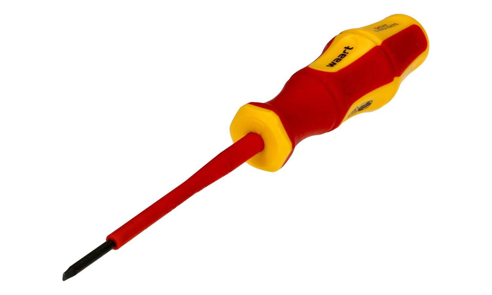 Șurubelniță izolată fiabilă cu lamă plată pentru lucru precis și sigur în instalații electrice. Datorită oțelului crom-vanadiu rezistent, oferă o rezistență ridicată și o durată de viață îndelungată, în timp ce izolația cu VDE 1000 V protejează la lucrul pe părți sub tensiune conform standardelor relevante.