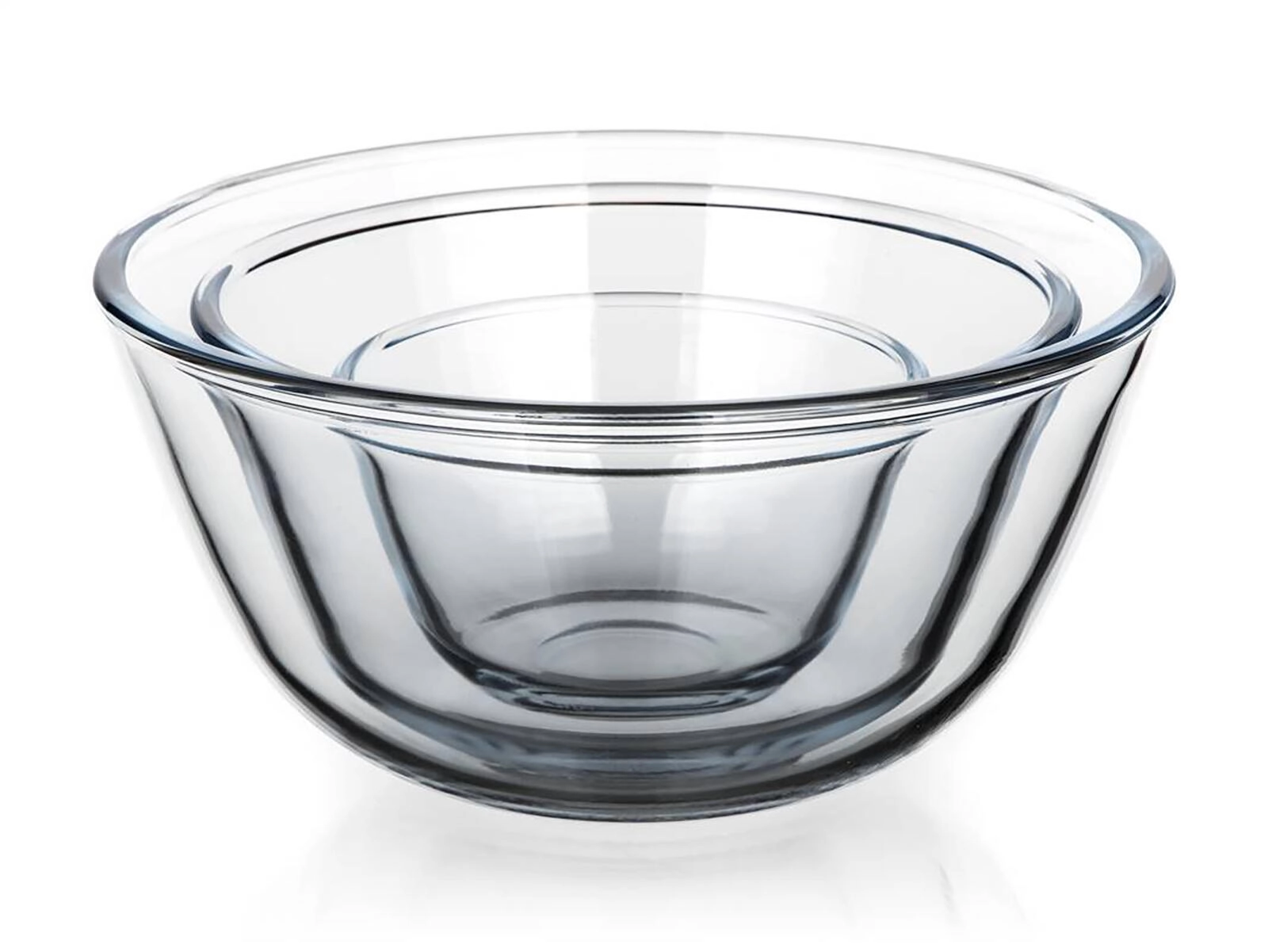 Acest bol multifuncțional din sticlă TREVIA este o alegere excelentă pentru gătitul și coptul de zi cu zi. Datorită execuției transparente aveți mereu o imagine clară asupra ingredientelor, fie că amestecați aluatul, marinați sau serviți salate și garnituri.
