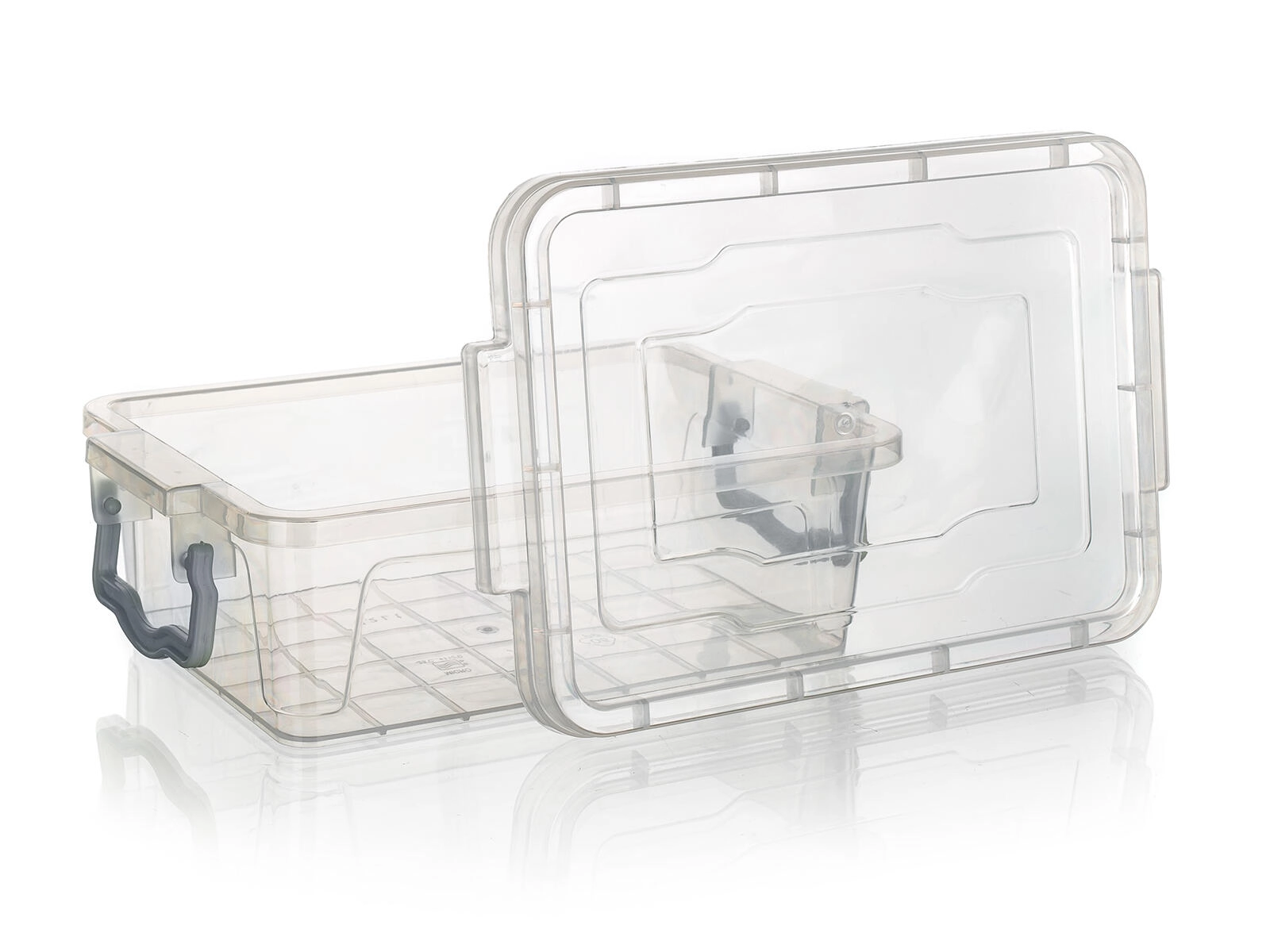 Cutia GEMA dreptunghiulară 1,2 l este un ajutor de încredere pentru depozitarea alimentelor. Execuția transparentă permite verificarea rapidă a conținutului, în timp ce mânerele turcoaz facilitează manevrarea și asigură o închidere fermă. Datorită plasticului rezistent, cutia este ușoară, practică și potrivită pentru utilizarea zilnică.