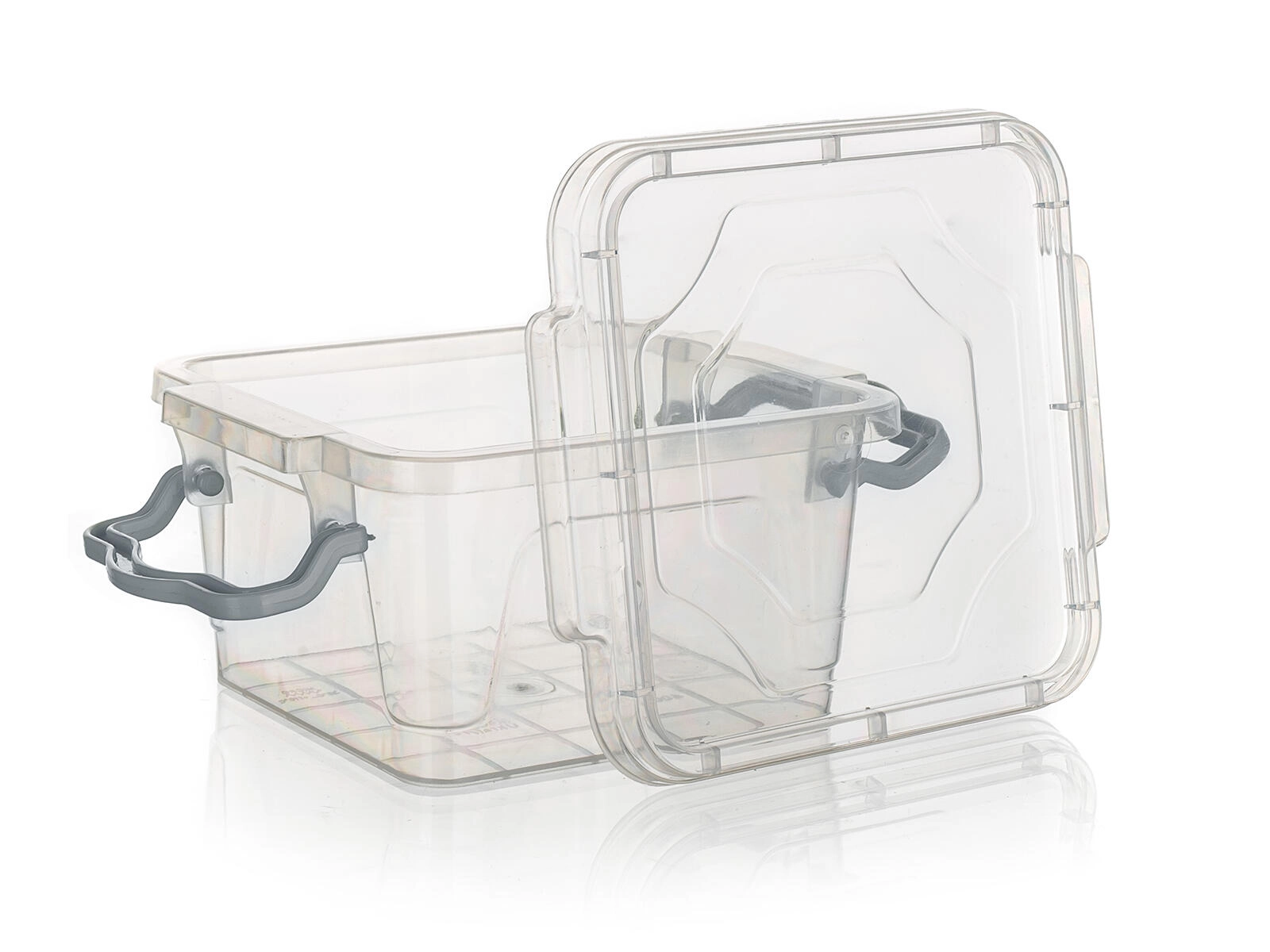 Cutia Gema este un ajutor universal pentru păstrarea zilnică a alimentelor. Datorită execuției transparente, aveți mereu o imagine clară a conținutului, în timp ce mânerele turcoaz solide ușurează manipularea și închiderea sigură. Forma pătrată economisește spațiu în frigider, congelator și dulapul de bucătărie.