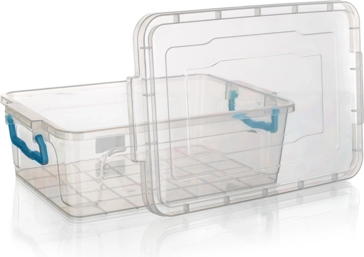 - Transport comod și închidere sigură datorită mânerelor turcoaz.