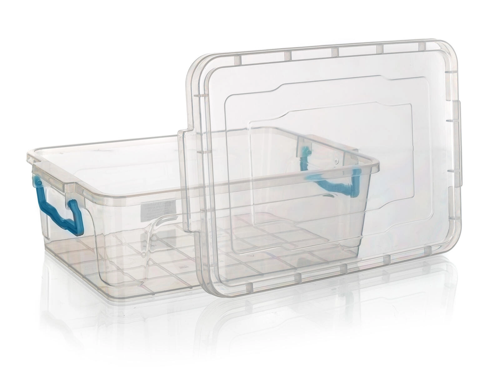 Cutia GEMA cu formă dreptunghiulară oferă depozitare clară și igienică datorită execuției transparente. Datorită mânerelor turcoaz solide, se manevrează ușor și se închide în siguranță. Este potrivită pentru păstrarea ingredientelor, a mâncărurilor gata preparate și a accesoriilor mici de bucătărie.