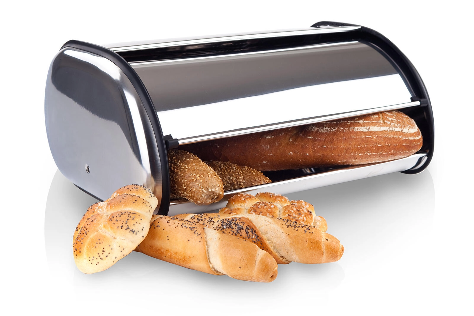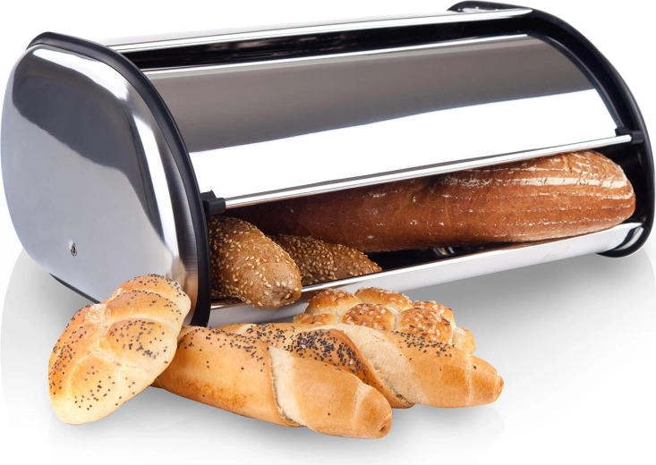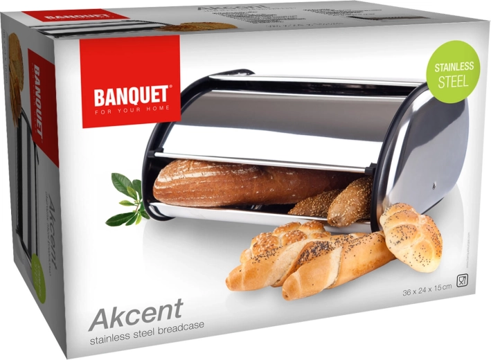 Cutia de pâine din inox AKCENT este un accesoriu practic pentru orice gospodărie. Protejează produsele de panificație împotriva uscării și a prafului și ajută la menținerea prospețimii și a gustului pentru o perioadă mai îndelungată. Designul minimalist, cu finisaj lustruit, se combină ușor cu alte aparate de bucătărie.