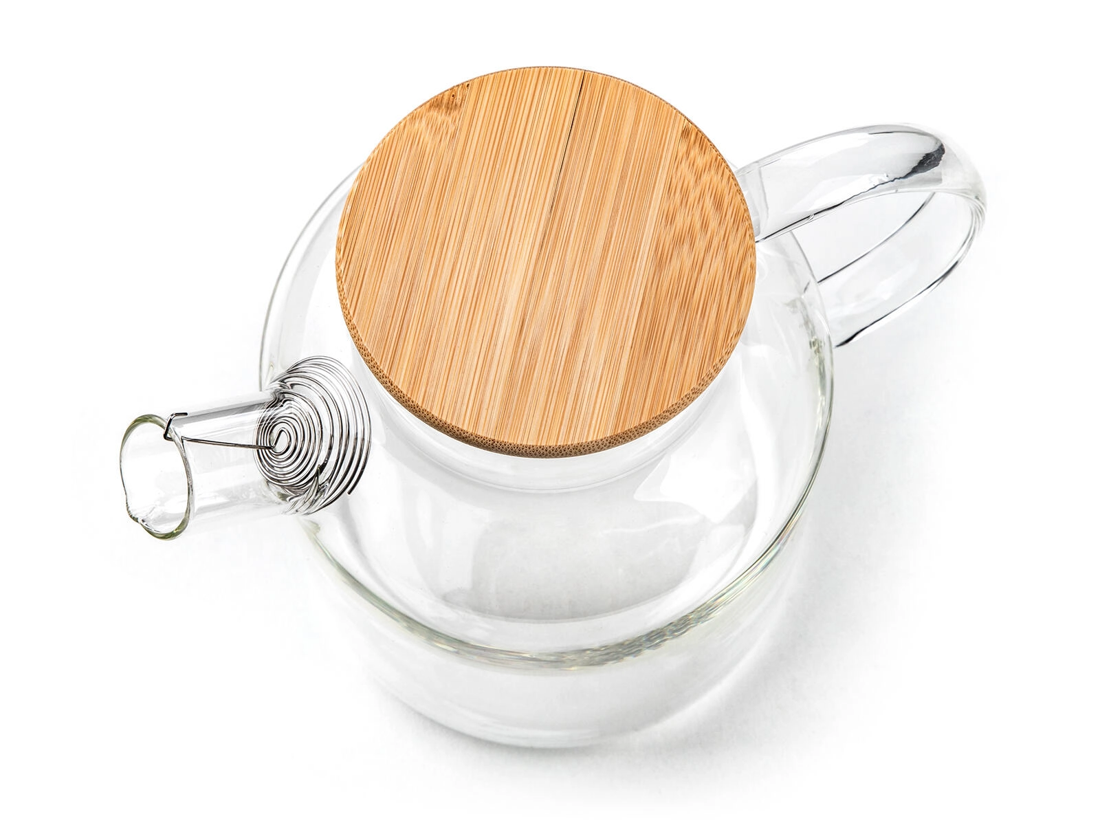 Practică, strecurătoarea spiralată din gura cănii reține ierburile, condimentele și bucăți mai mari de fructe. Capacul din bambus cu înveliș din oțel inoxidabil și garnitură din silicon ajută la păstrarea prospețimii aromei băuturii și împiedică pătrunderea umidității și a mirosurilor. Recipientul din sticlă este potrivit pentru mașina de spălat vase pentru o întreținere ușoară.