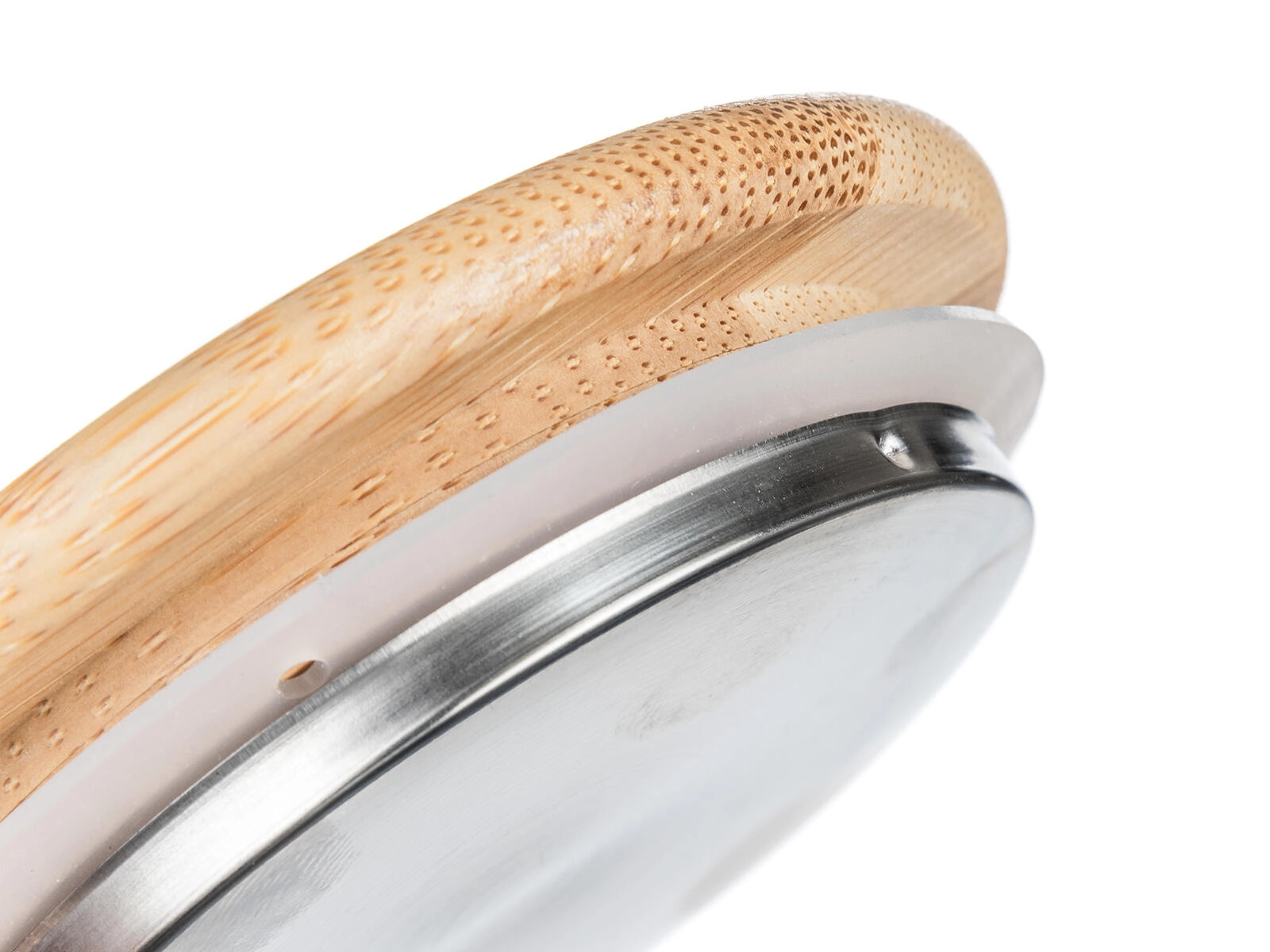 Capacul din bambus, cu înveliș din oțel inoxidabil și garnitură din silicon, rezistă la umiditate și mirosuri și ajută la păstrarea aromei băuturii în interiorul cănii.