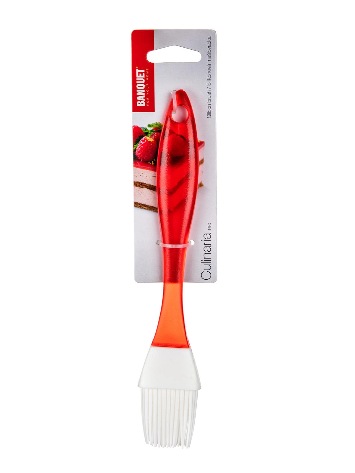 Pensula practică din silicon CULINARIA, cu lungimea de 21 cm, este ideală pentru coacere și grătar. Datorită firelor din silicon rezistente la căldură până la 230 °C, distribuie uniform uleiul, untul sau marinadele. Mânerul ergonomic roșu din plastic transparent se ține confortabil în mână și are un orificiu pentru agățare. Curățare ușoară și durată lungă de viață o fac un ajutor indispensabil în orice bucătărie.