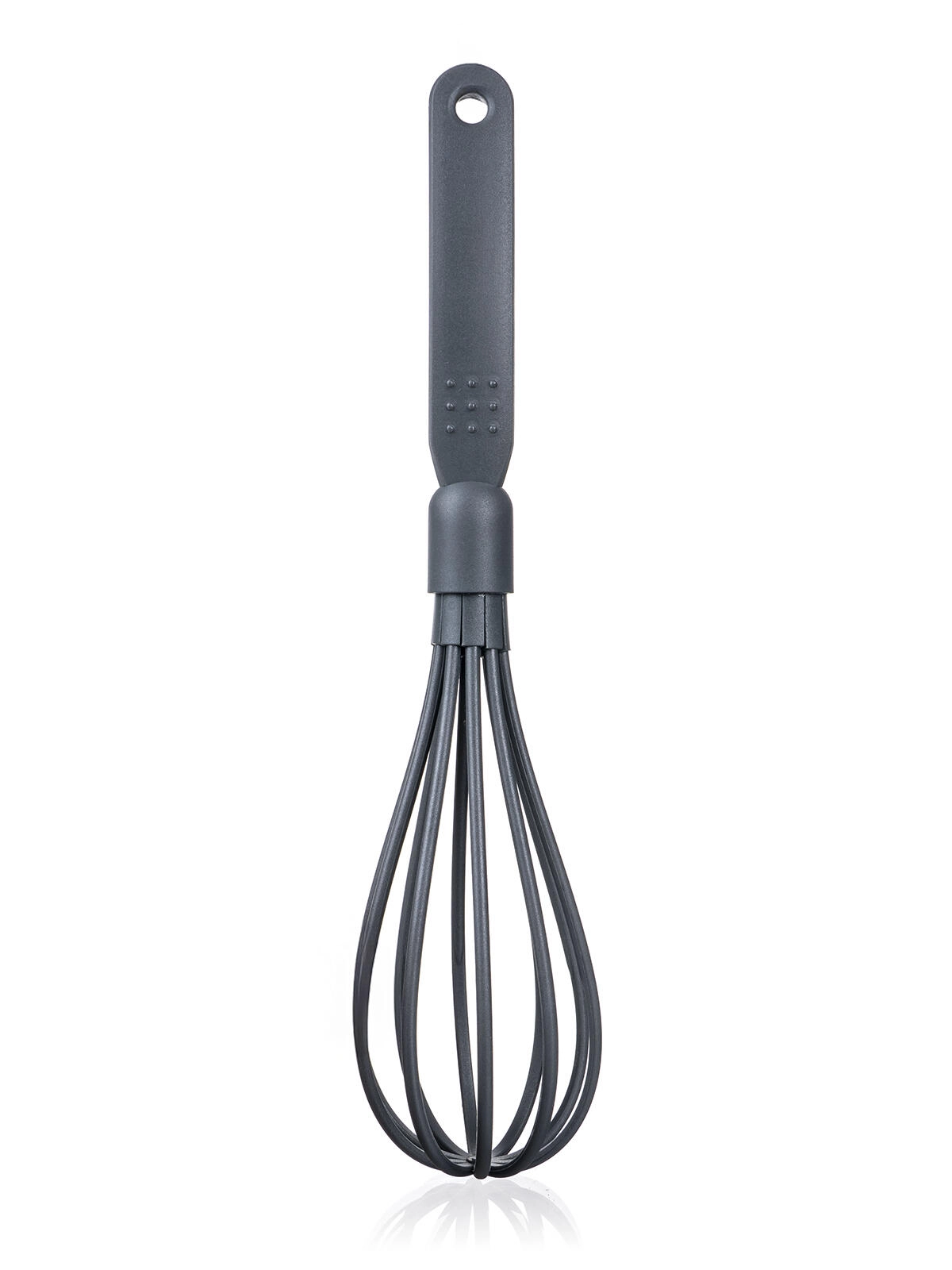 Telul practic CULINARIA Grey, cu lungimea de 29 cm, este fabricat din nailon rezistent, delicat cu vasele cu strat antiaderent. Oferă mâner ergonomic, agățătoare pentru suspendare și este compatibil cu mașina de spălat vase. Rezistă la temperaturi de până la 210 °C și este ideal pentru baterea ouălor, aluaturilor sau sosurilor fără a zgâria tigăile și oalele.