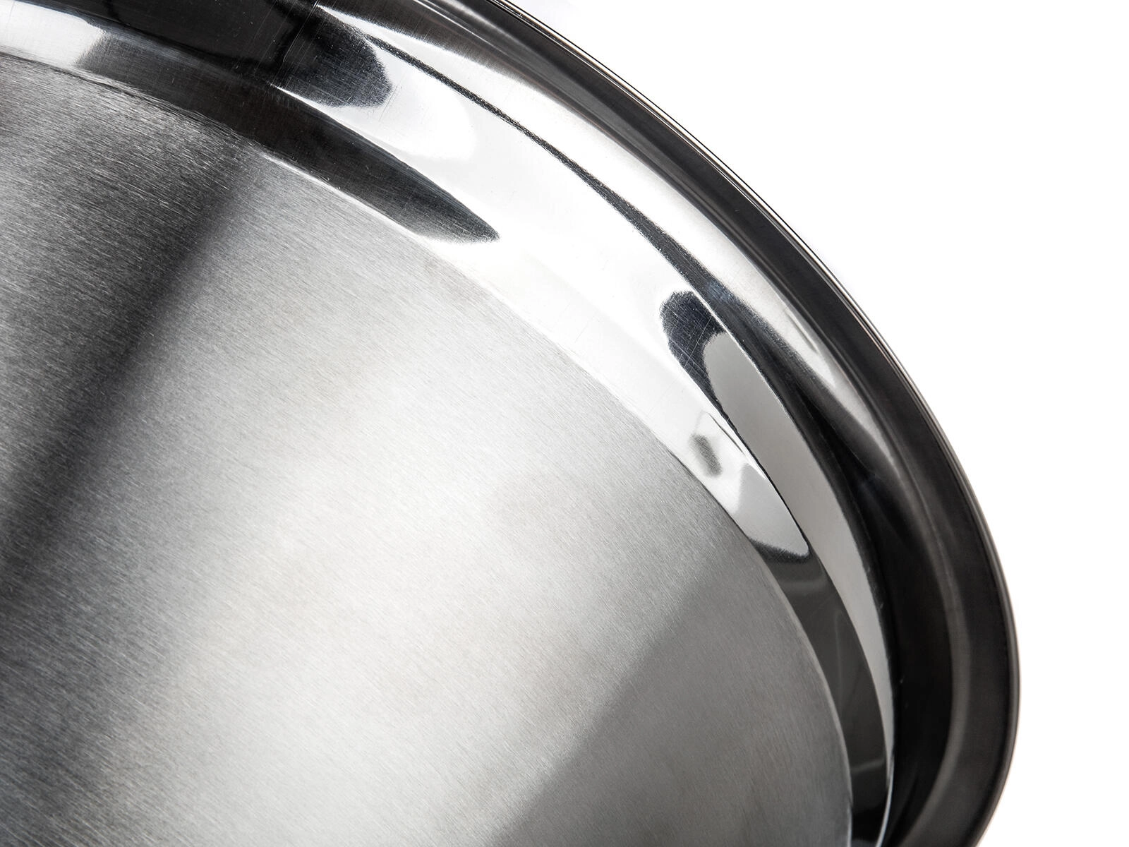 Marginea lată și rotunjită facilitează transportul și turnarea sigură, în timp ce forma stabilă este ideală pentru amestecarea ingredientelor, dospirea aluatului sau servirea salatelor și garniturilor. Oțelul inoxidabil este rezistent la pete și mirosuri și își păstrează aspectul pe termen lung.