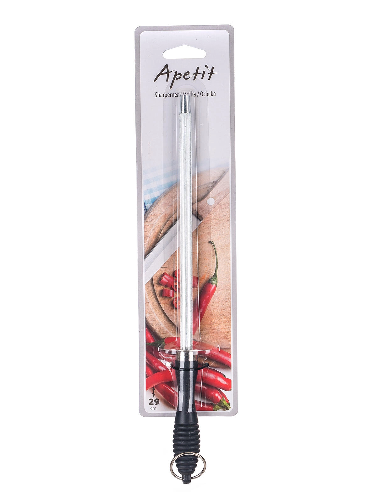 Oțel profesional pentru ascuțit cuțite Apetit, cu lungimea de 29 cm, pentru ascuțire rapidă și precisă și pentru îndreptarea tăișului. Datorită tijei din oțel texturat și mânerului ergonomic, oferă performanță fiabilă, utilizare în siguranță și durată de viață îndelungată pentru orice bucătărie.