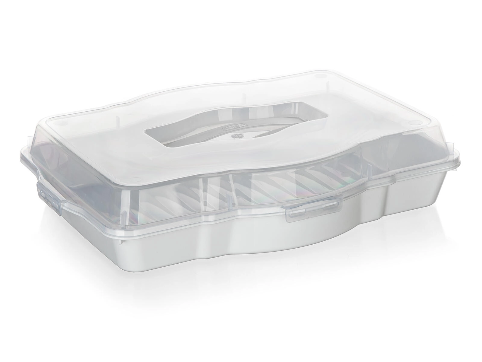 Păstrați și transportați delicatesele făcute în casă în siguranță și cu stil. Tava cu capac CULINARIA oferă o suprafață încăpătoare pentru torturi, prăjituri și sandvișuri, în timp ce capacul transparent asigură vizibilitatea conținutului și protecție fiabilă la transport.