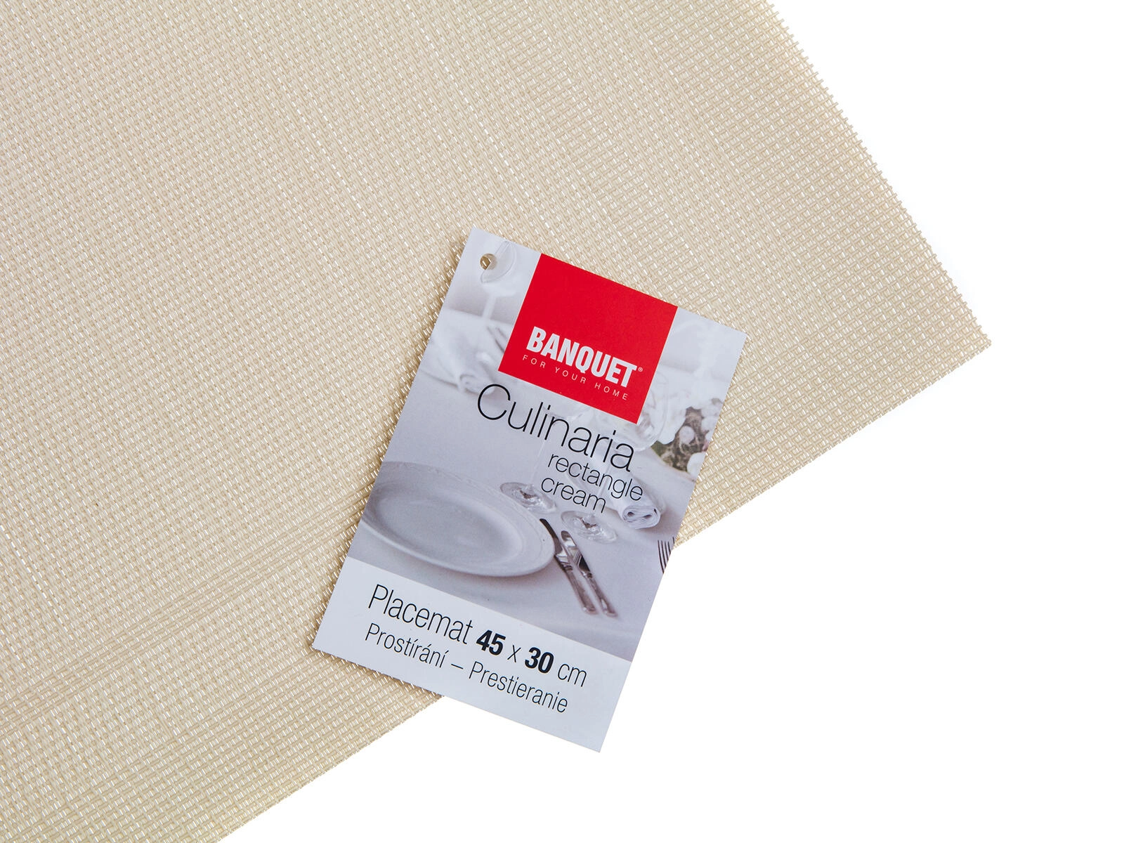 Descoperă suportul de masă elegant RECTANGLE, care îmbină designul modern cu funcționalitatea ridicată. Nuanța crem se potrivește ușor cu diferite stiluri de servire și oferă mesei un aspect curat și rafinat. Combinația de materiale 75 % PVC și 25 % PES asigură durabilitate îndelungată, întreținere facilă și rezistență la murdărie.