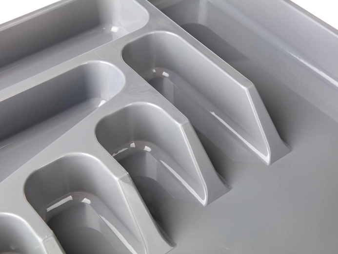 Profilul jos și baza dreaptă asigură o fixare fermă în sertar și o depozitare ordonată a tacâmurilor fără deplasare.