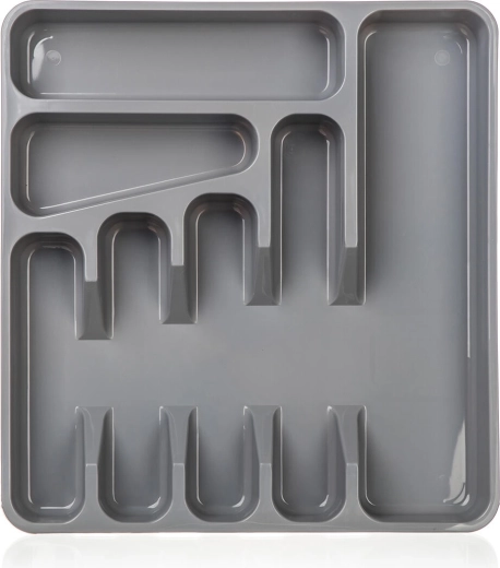 Tăvița gri pentru tacâmuri, din plastic de calitate, este o soluție practică pentru depozitarea clară a tacâmurilor și a micilor ustensile de bucătărie. Datorită compartimentării bine gândite, vei avea furculițe, cuțite, linguri și mici accesorii mereu la îndemână și exact la locul lor.