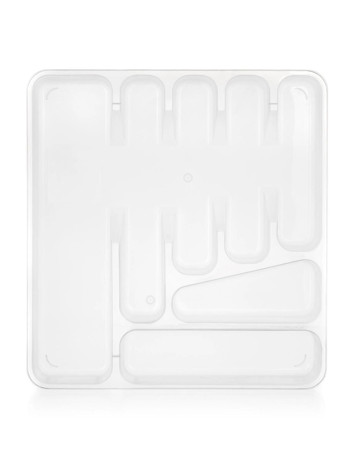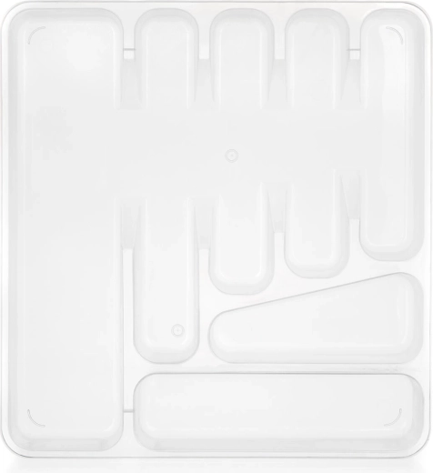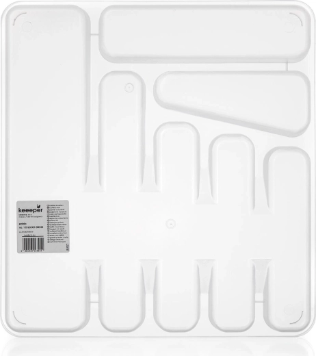 Practică tăviță pentru tacâmuri pentru sertar din plastic rezistent, păstrează tacâmurile și ustensilele de bucătărie organizate și la locul lor. Datorită designului transparent vezi ușor conținutul, iar dimensiunile compacte 39,5 × 37 × 5 cm se potrivesc în majoritatea sertarelor standard.