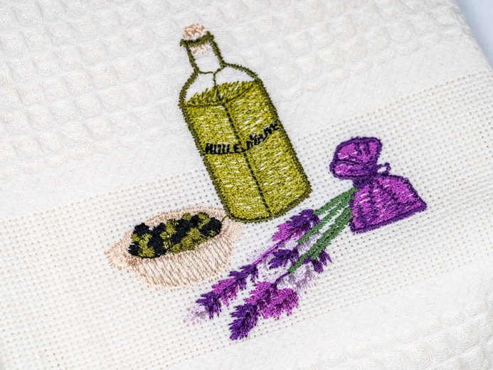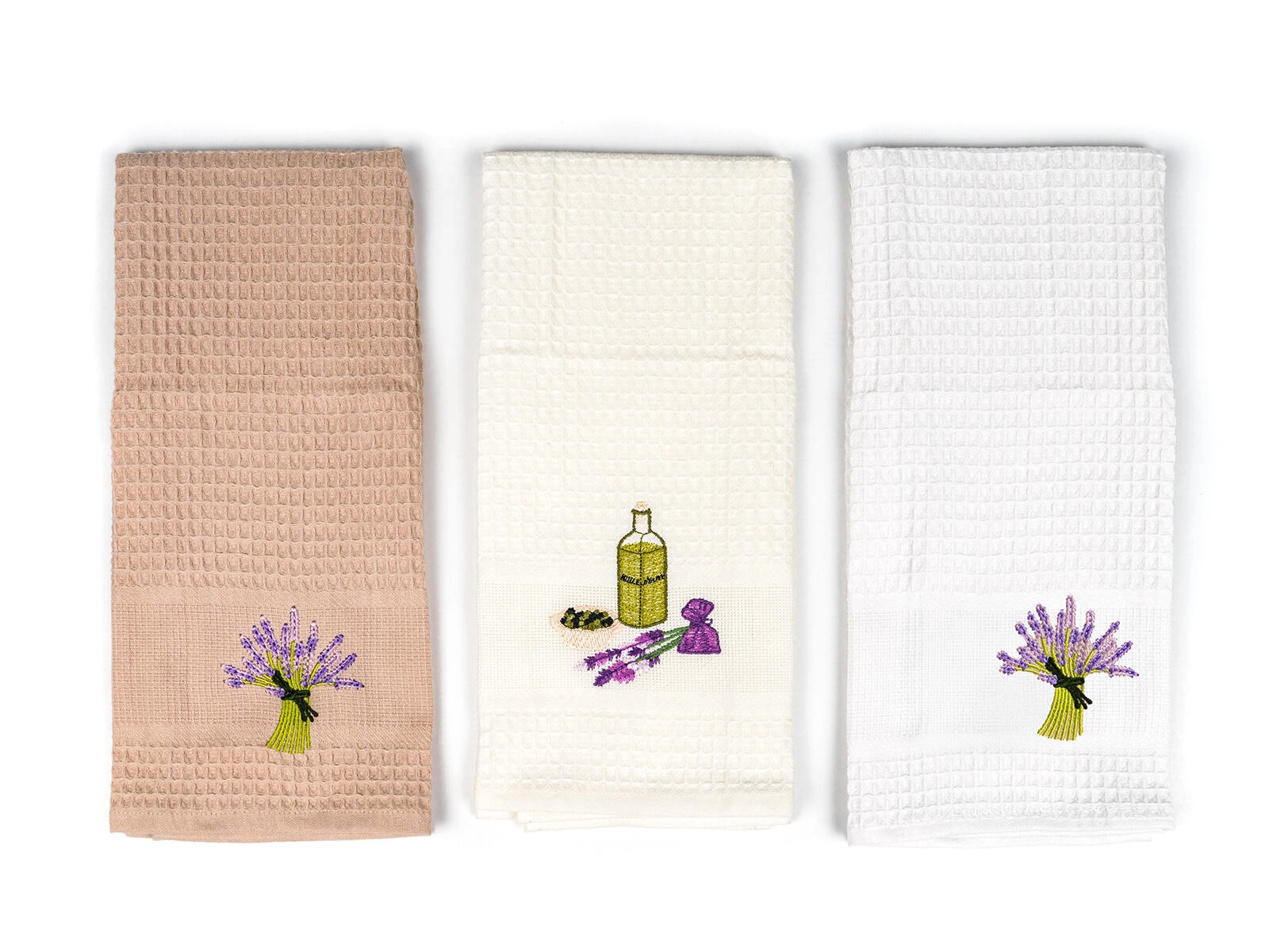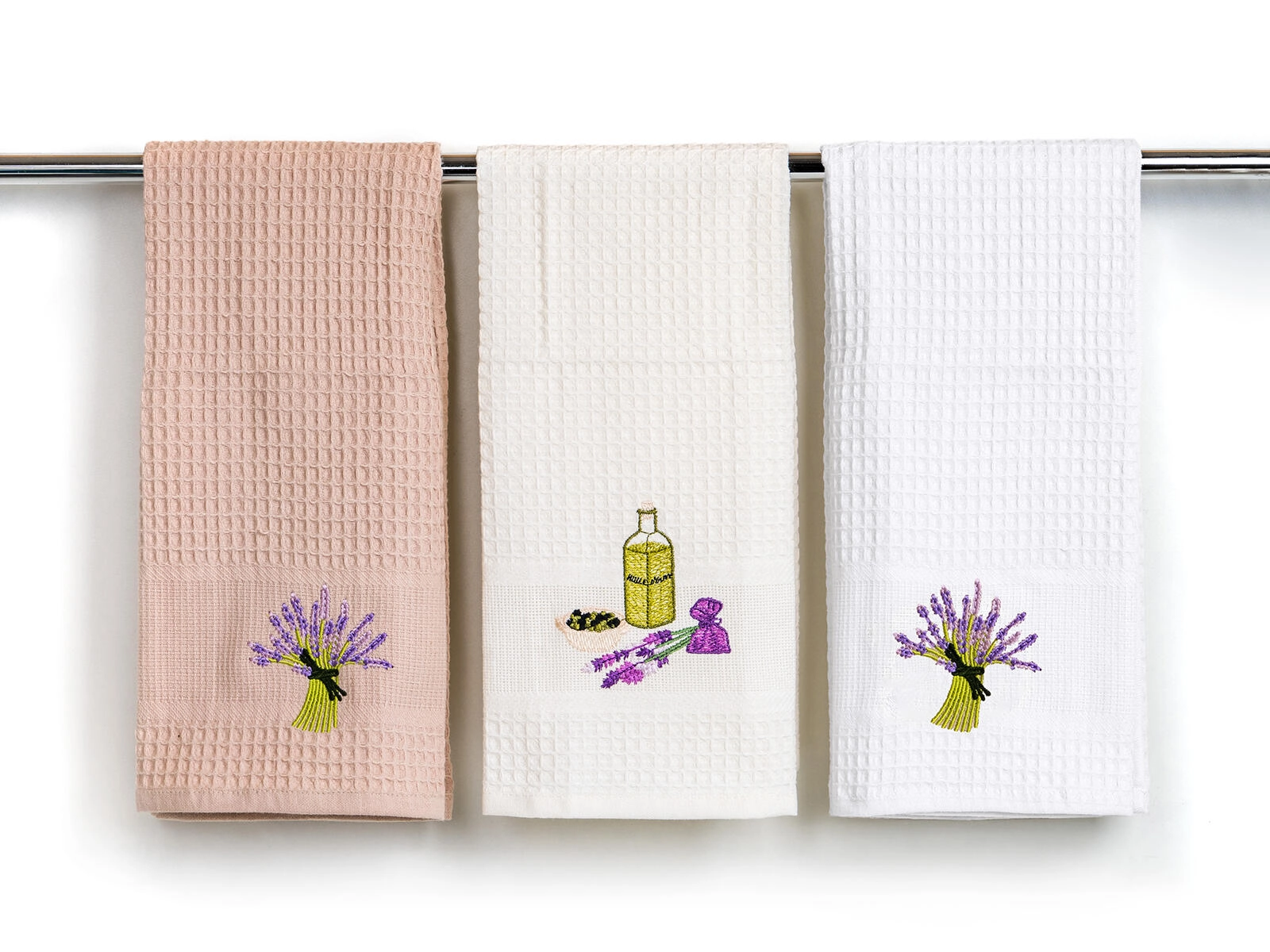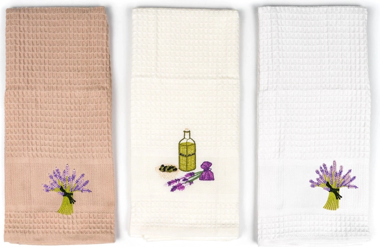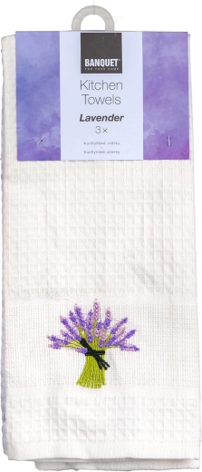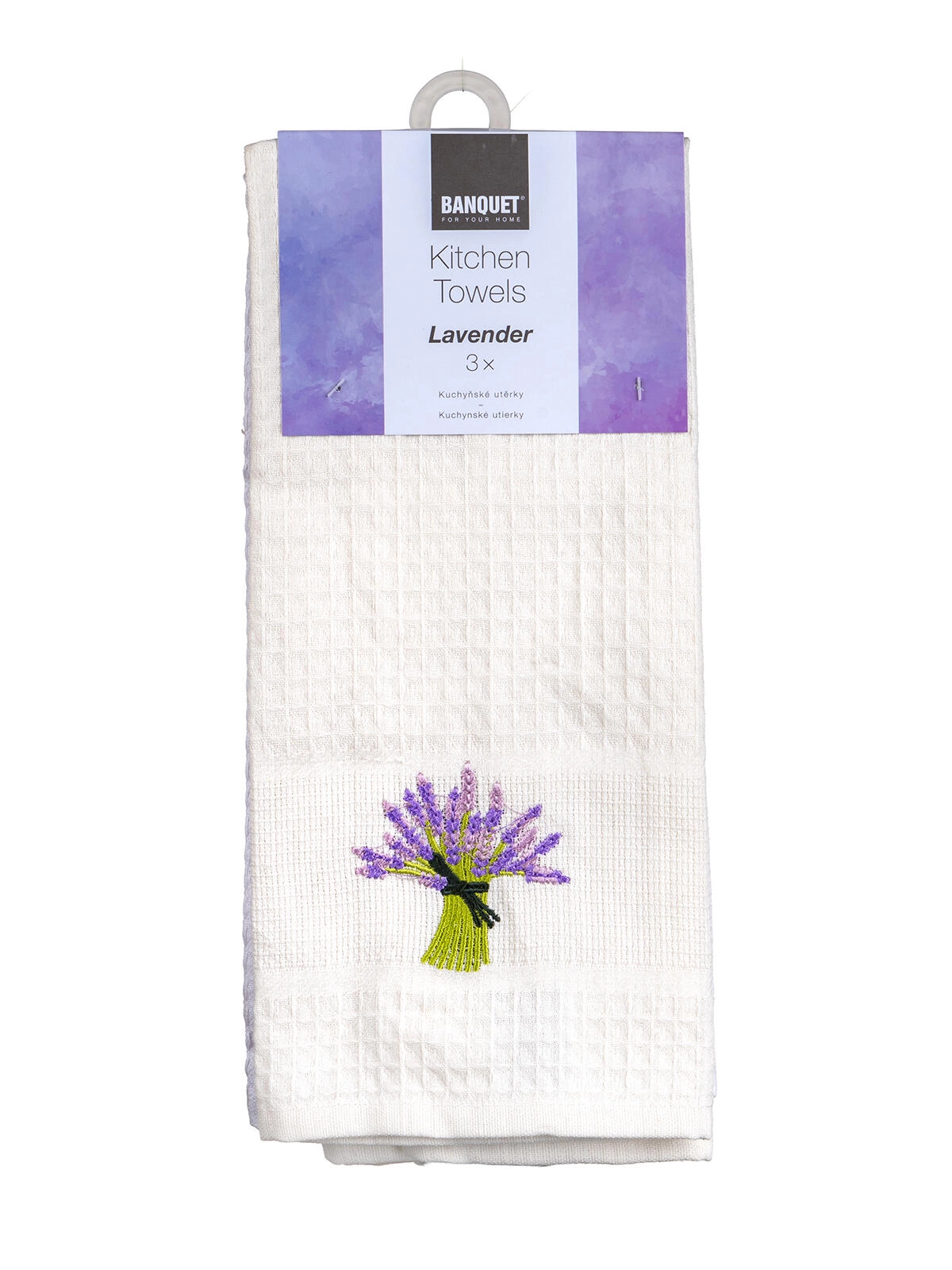 Motivul delicat cu lavandă aduce stil și armonie în bucătărie. Prosoapele sunt perfecte și ca un cadou cu bun gust.