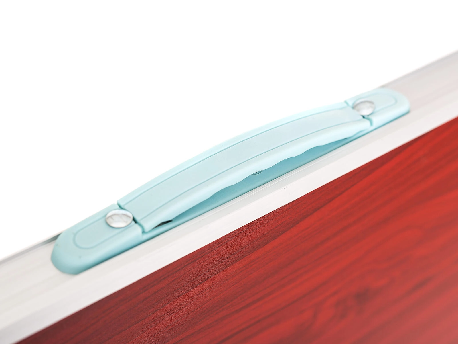 Masa pliabilă Tourneo este alegerea ideală oriunde aveți nevoie de o suprafață de lucru sau de luat masa fiabilă, fără instalare complicată. Suprafața laminată cu decor de lemn se întreține ușor, iar muchiile rotunjite și profilele din aluminiu protejează blatul împotriva deteriorării.