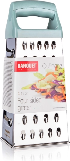 Descoperiți o răzătoare de bucătărie fiabilă, care combină durabilitatea oțelului inoxidabil cu manevrarea comodă. Cele patru fețe oferă diferite tipuri de răzuire pentru legume, brânzeturi, fructe sau ciocolată. Datorită construcției stabile în formă de A, lucrul este sigur și precis.