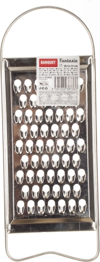 Descoperiți răzătoarea plată fiabilă pentru legume Fantasia, cu dimensiuni de 29,5 × 12 cm, ideală pentru prepararea zilnică a salatelor, garniturilor și pentru bucătăria de acasă. Datorită finisajului cositorit este rezistentă la coroziune și ușor de curățat, în timp ce construcția solidă din tablă asigură stabilitate la răzuire.