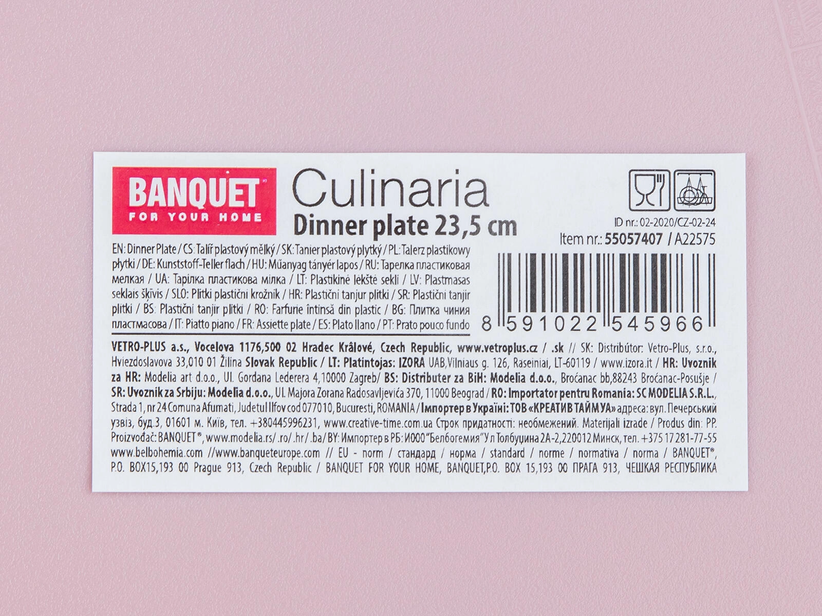 Farfuria întinsă roz CULINARIA, cu diametrul de 23,5 cm, este o soluție practică pentru utilizarea zilnică acasă, la cabană sau la mesele în aer liber. Plasticul rezistent facilitează manipularea, este ușor și totodată stabil pe masă. Suprafața mată și liniile curate oferă mesei dumneavoastră un aspect modern și elegant.