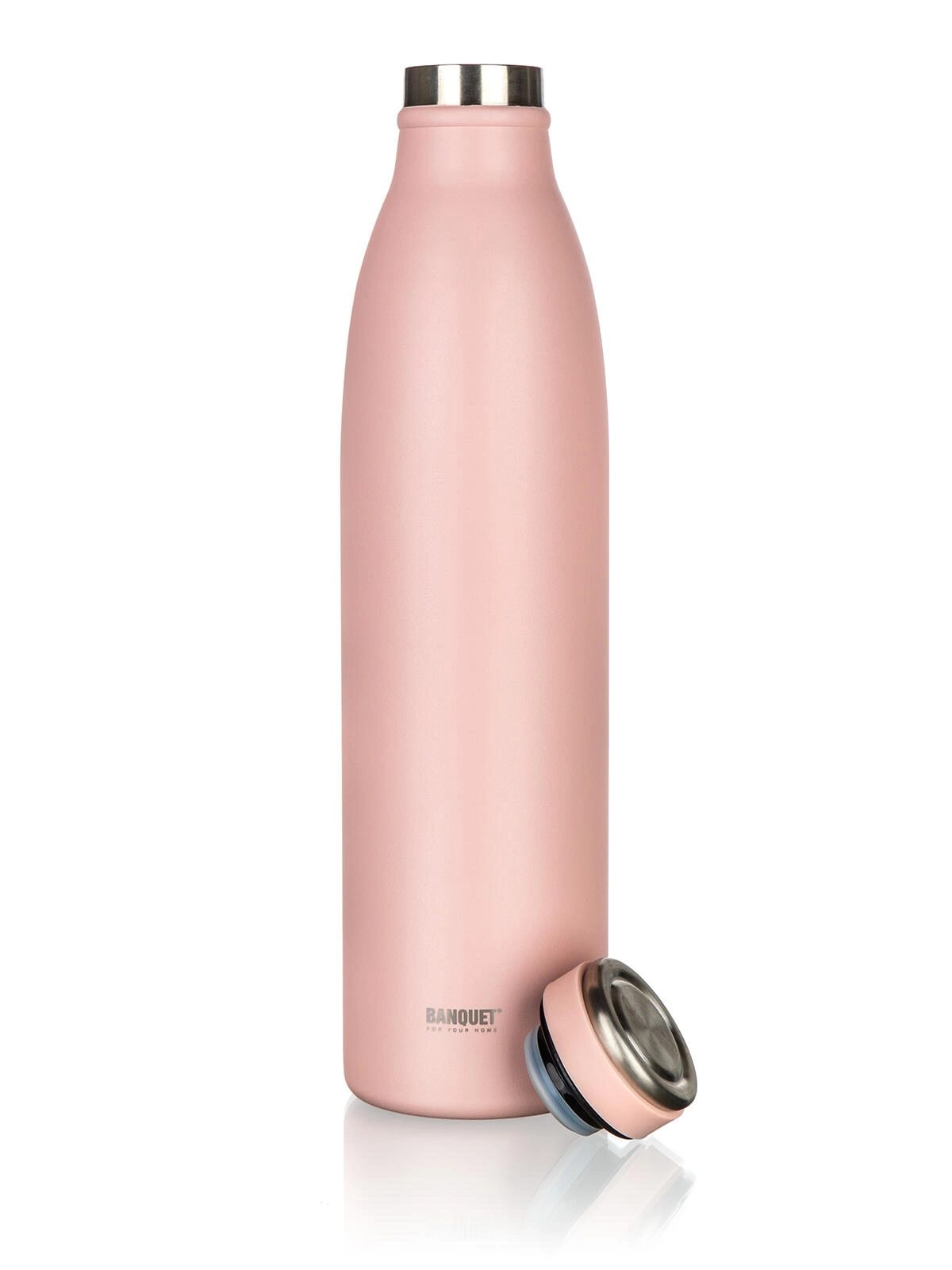 Corpul suplu, în finisaj mat roz somon, se potrivește perfect în mână și în suportul pentru pahare al mașinii. Capacul filetat cu închidere etanșă previne scurgerile, astfel termosă este potrivită și pentru geantă sau rucsac. Pentru satisfacție maximă, recomandăm transportul în poziție verticală.