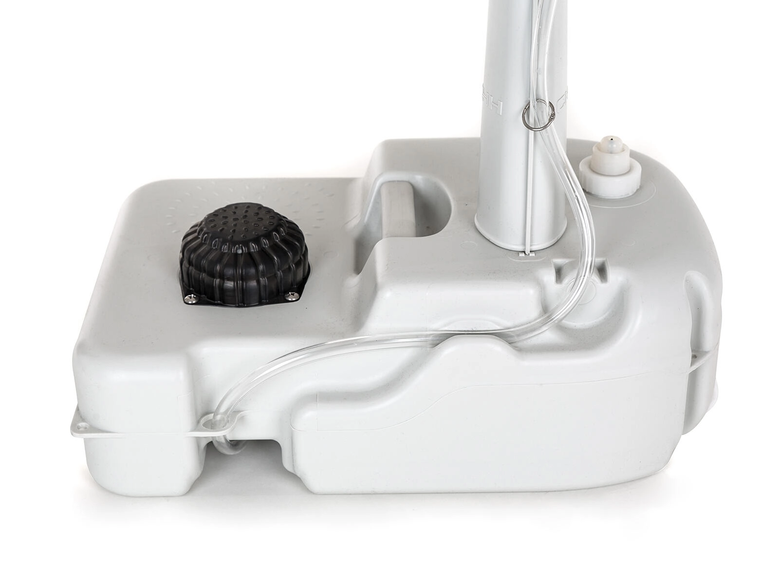 Pompa acționată cu piciorul asigură un flux lin de apă din rezervorul de 17 l, astfel încât vă puteți spăla mâinile igienic și fără contact, practic oriunde.