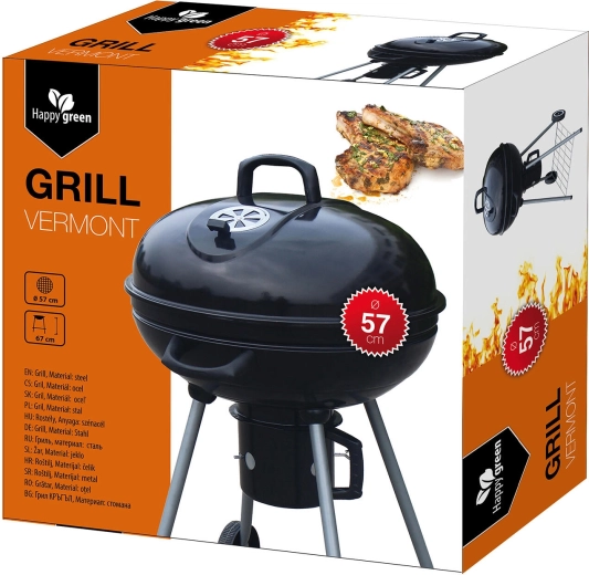 Bucură-te de grătare relaxate cu grătarul tip cazan Vermont, cu diametrul de 57 cm. Oferă un focar emailat pentru durată lungă de viață, un grătar cromat pentru rumenire uniformă și un recipient de cenușă detașabil pentru curățare ușoară. Datorită celor două roți și picioarelor solide din oțel inoxidabil, grătarul este stabil și ușor de mutat.