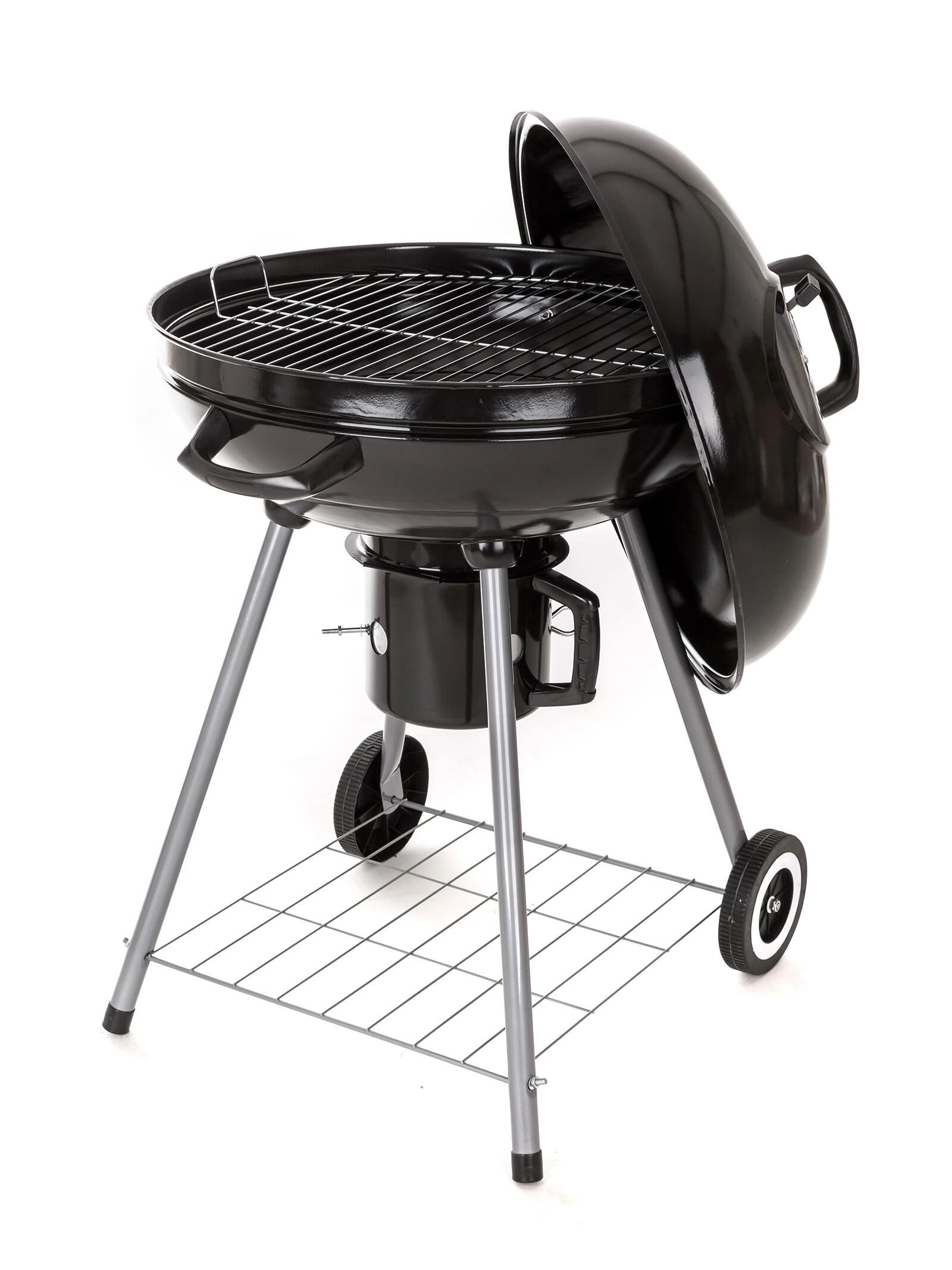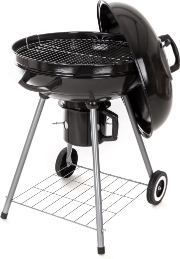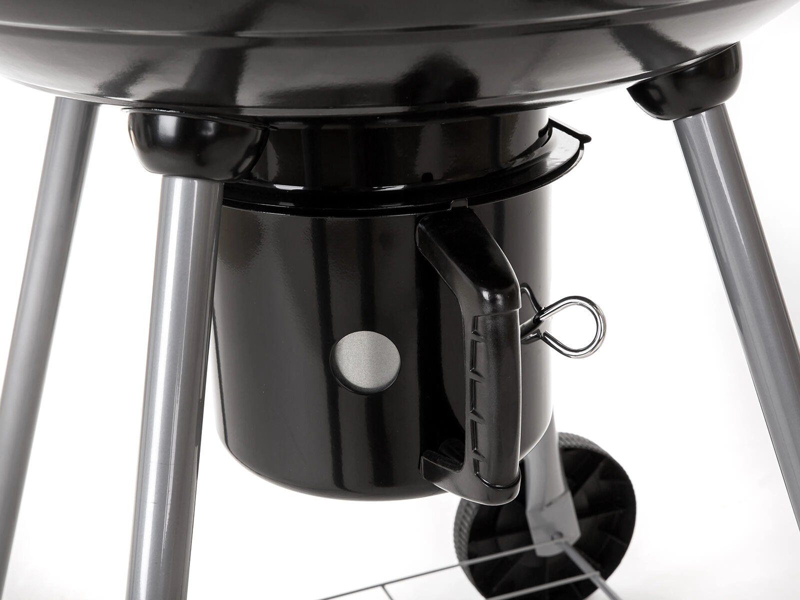 Recipientul de cenușă detașabil face curățenia de după grătar mai rapidă, iar roțile permit mutarea comodă pe terasă sau în grădină. Construcția stabilă, cu picioare din oțel inoxidabil și grătar de cărbuni galvanizat, garantează durabilitate și funcționare sigură.