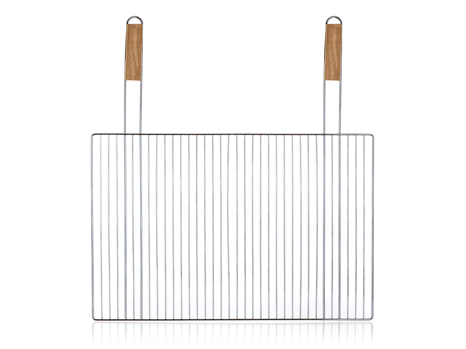 Grătarul dreptunghiular BBQ, cu dimensiunile 60 × 40 cm, este alegerea ideală pentru oricine dorește să gătească rapid, comod și cu rezultate excelente. Oțelul cromat robust garantează o durată de viață îndelungată și o curățare ușoară, în timp ce mânerele din lemn sporesc siguranța și confortul la manipulare.