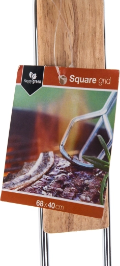 Grătar universal pentru grătare de grădină, cu dimensiunile 68 × 40 cm. Oferă oțel cromat solid, 34 de sârme pentru o coacere uniformă și mânere confortabile din lemn pentru manipulare sigură.