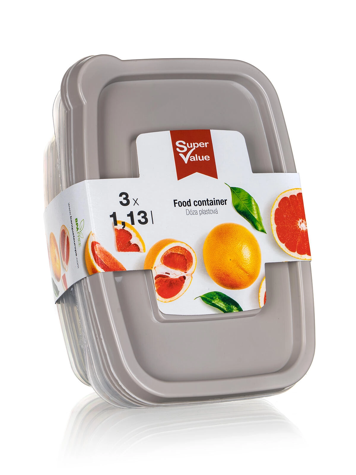 Setul SUPER VALUE oferă trei cutii universale din plastic de 1,13 l cu capace elegante în culoarea Latte. Datorită corpului transparent, vezi mereu rapid ce este înăuntru, iar capacul care se potrivește ferm ajută la păstrarea prospețimii și previne vărsările.