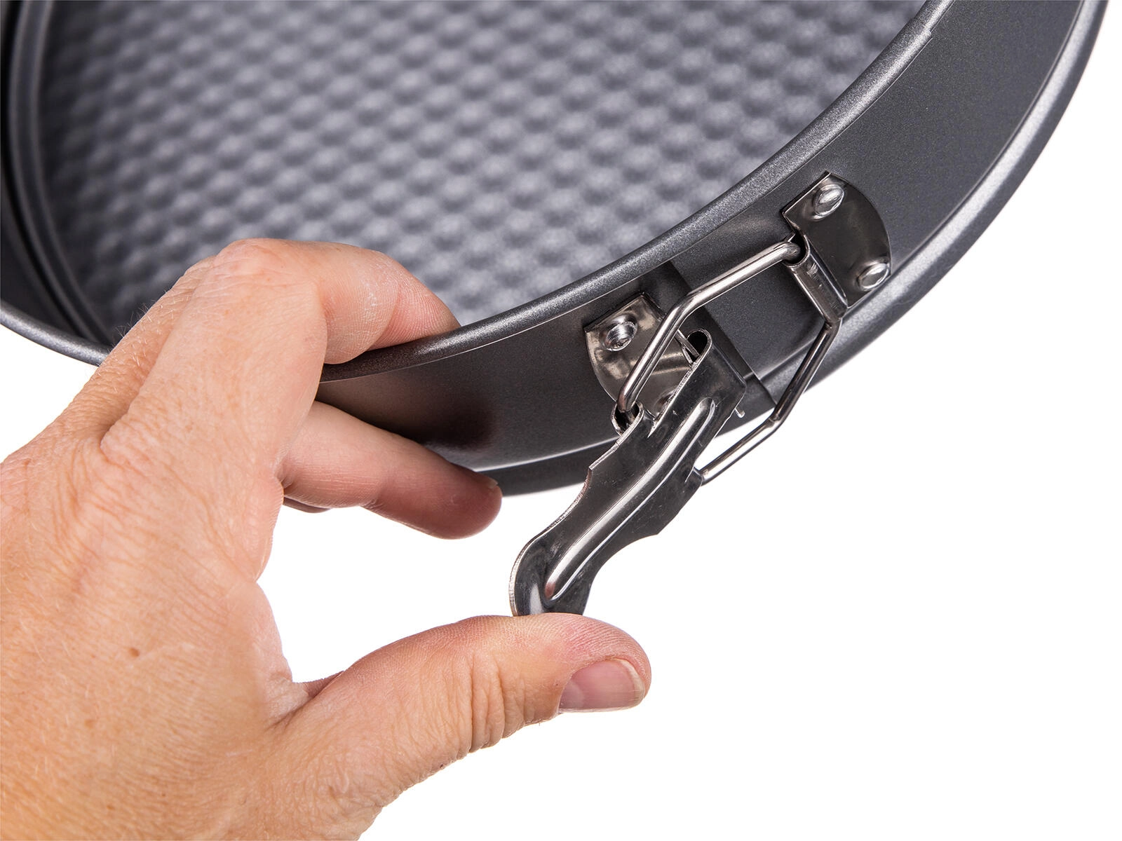 Datorită marginii detașabile cu clemă, scoți tortul sau cheesecake-ul fără efort și cu pereți perfect netezi. Pereții înalți (6,9 cm) oferă suficient spațiu pentru blaturi mai înalte și deserturi stratificate.