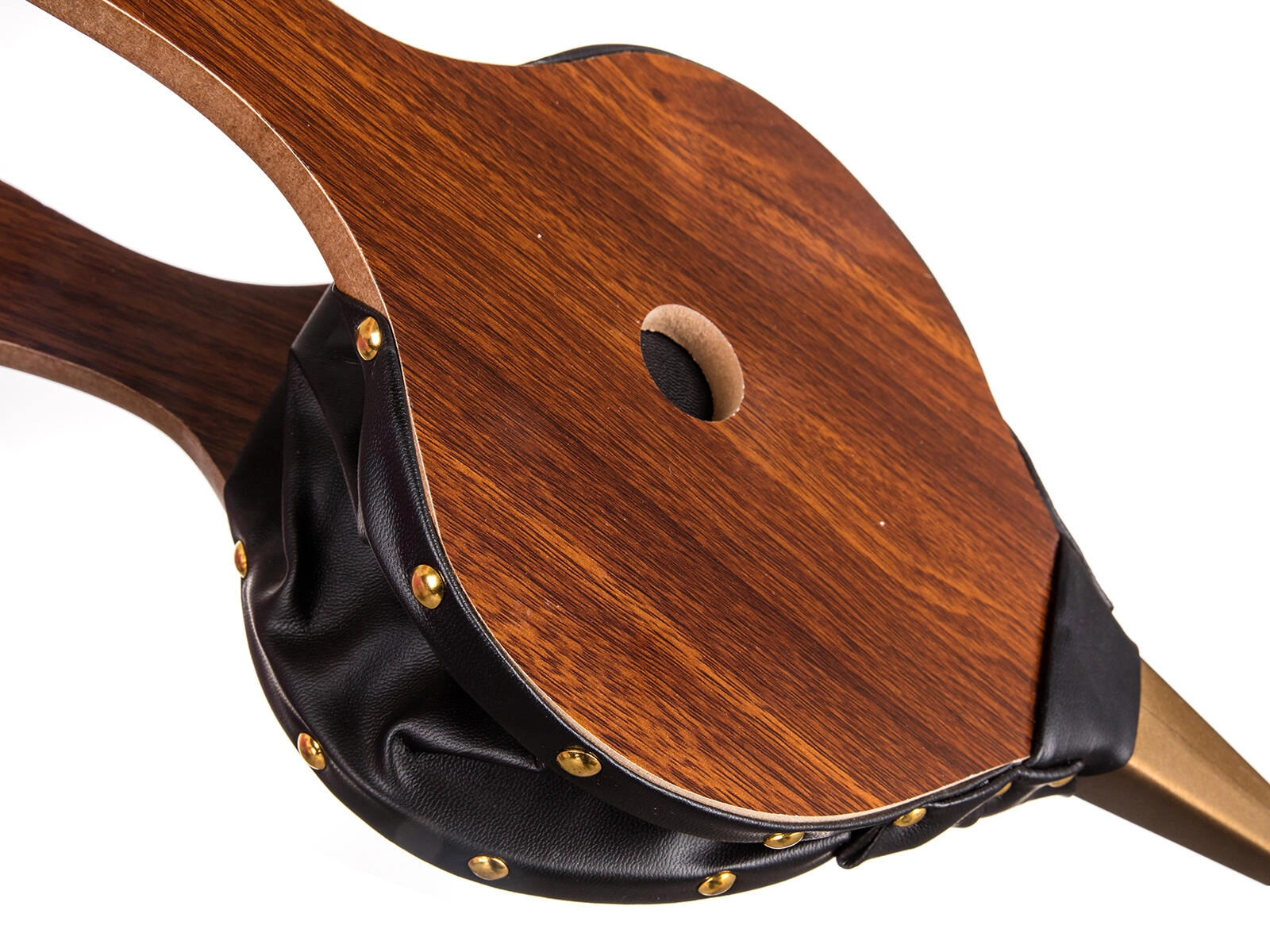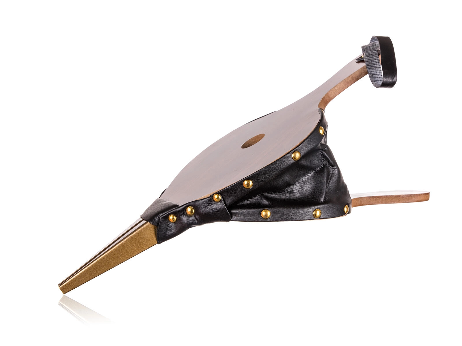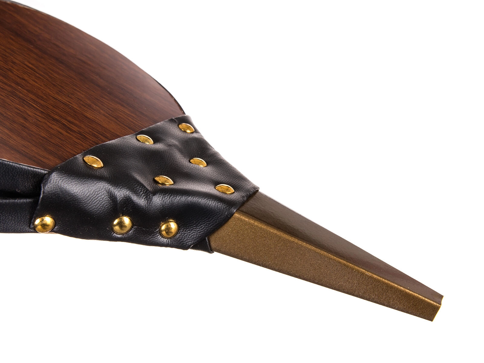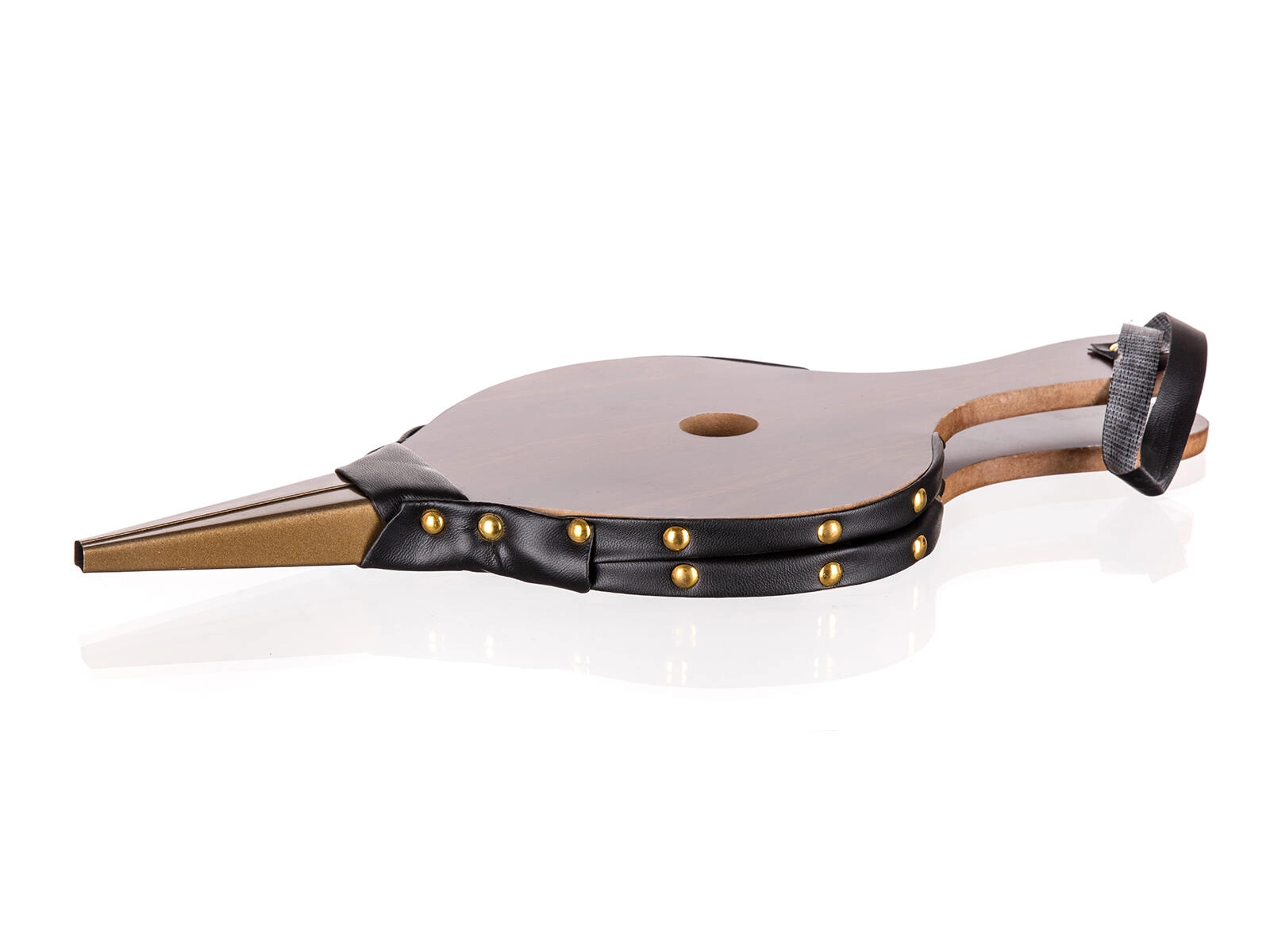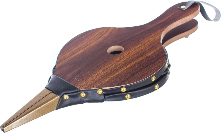 Corp din lemn, laterale robuste din piele ecologică cu nituri și duză metalică pentru durată lungă de viață și performanță stabilă.