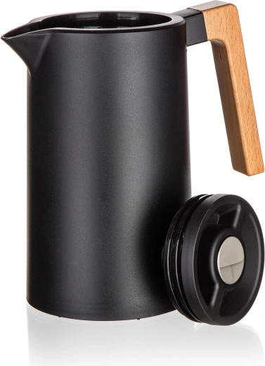 Datorită oțelului inoxidabil 304 de calitate la interior, băuturile își păstrează gustul și aroma. Exteriorul din inox 201 cu înveliș din plastic rezistent (PP) este practic pentru întreținere și utilizare zilnică. Ideală pentru cafea, ceai, apă și limonade de casă.